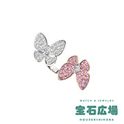 メゾンが最も愛するモチーフのひとつ、“蝶”をテーマに、空を舞う蝶の優雅な美しさを表現した「ドゥ パピヨン」コレクションのホワイトゴールド製アントレレドアリングです。つけると指と指の間にモチーフが出るアントレレドアリングは、個性的な指輪のつけ方を提案したヴァンクリーフの名作。センターにマーキスダイヤモンドをあしらった2羽の蝶の羽は、片方は愛らしいピンクサファイア、もう片方は極上のダイヤモンドがパヴェセッティングされています。美しく可憐な色彩が目を惹く、洗練された存在感たっぷりの特別感あふれるハイジュエリーです。
