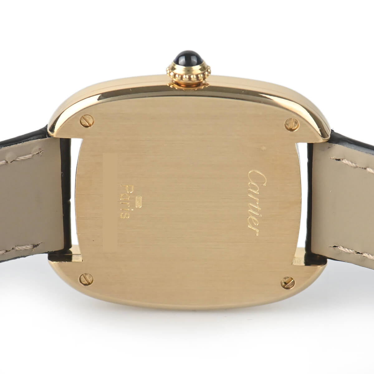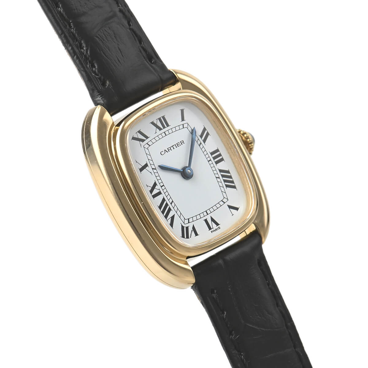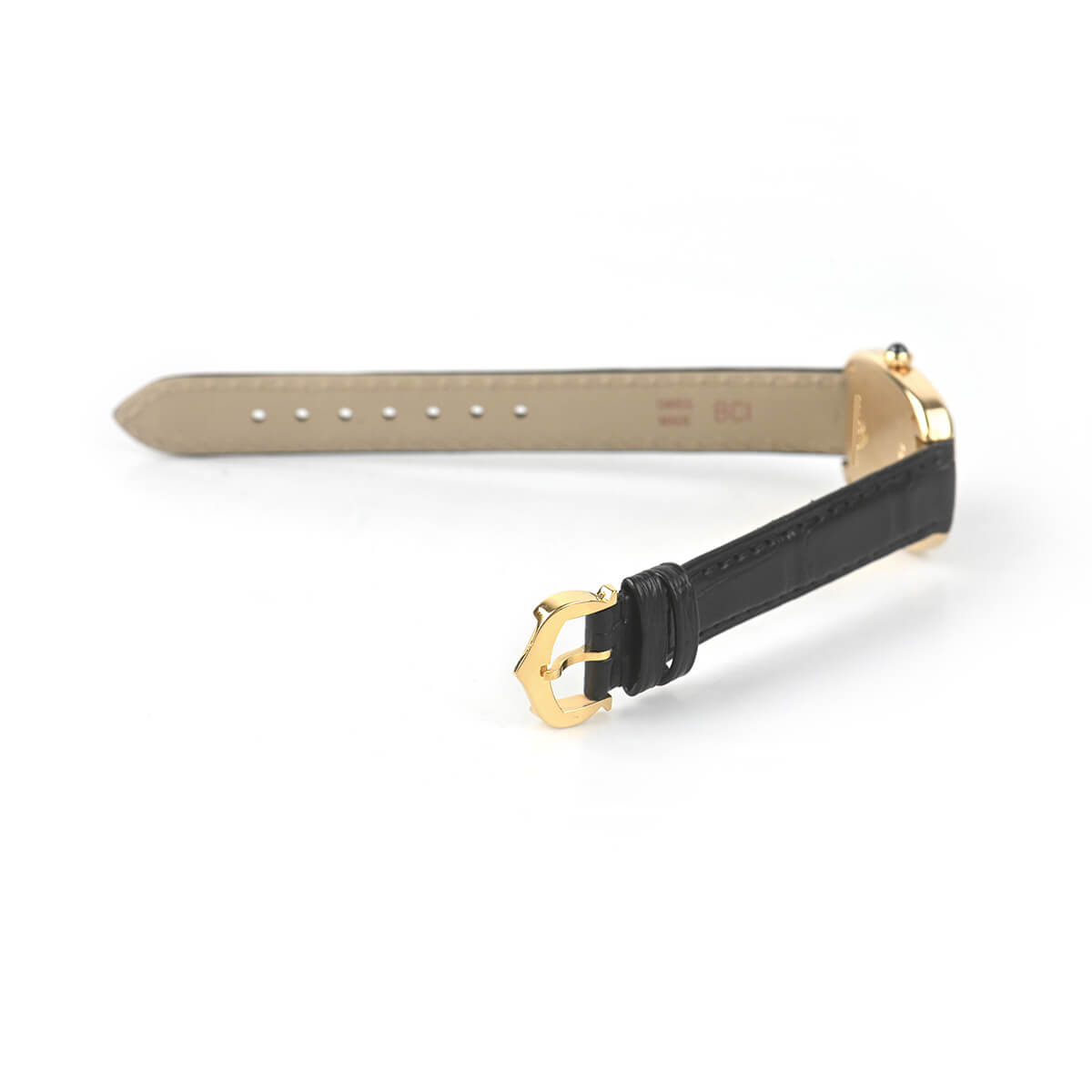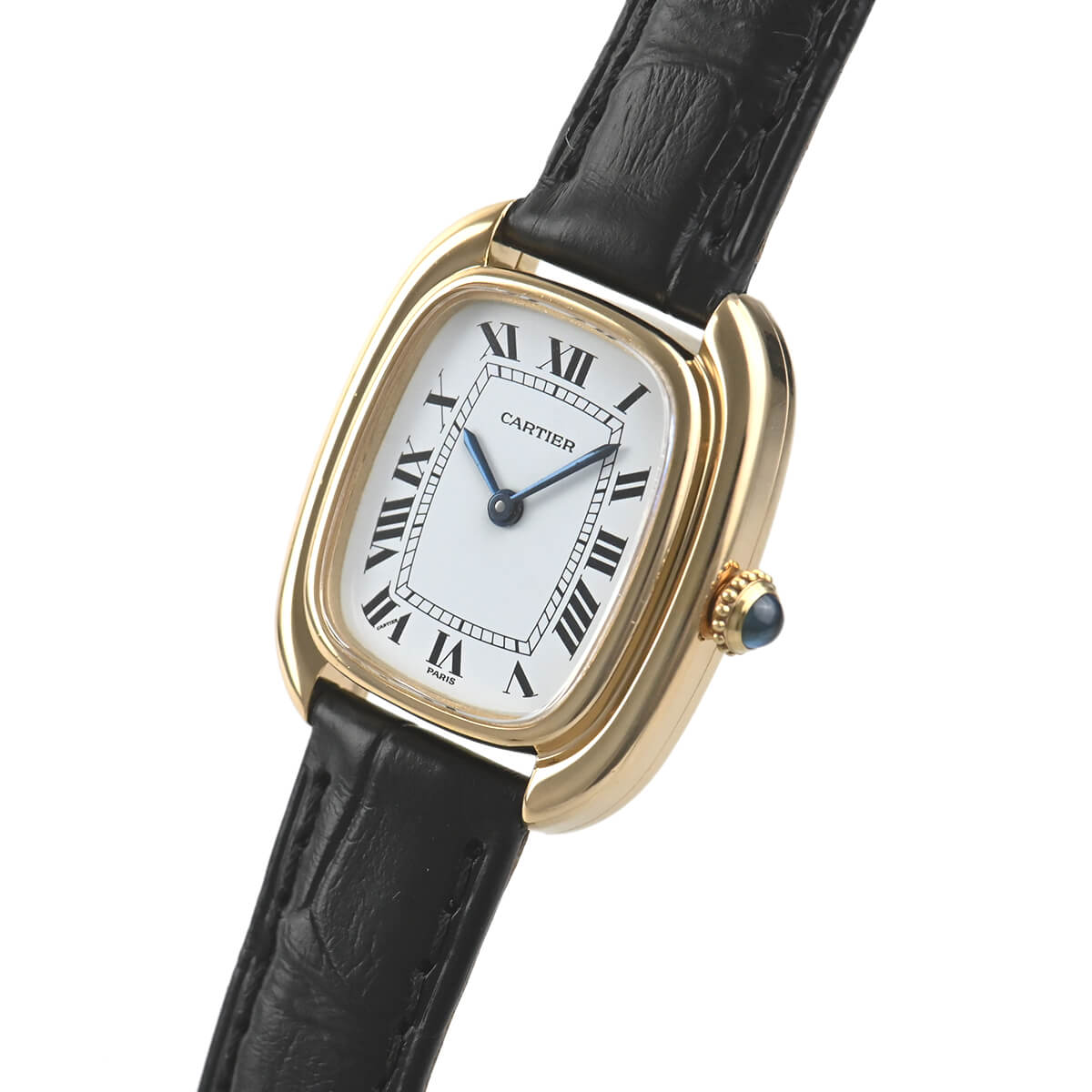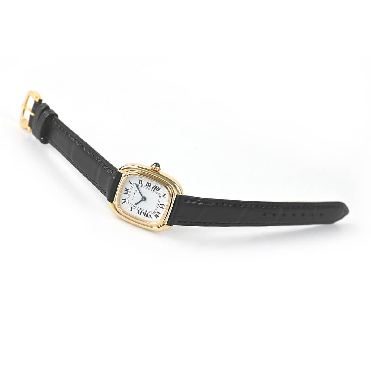 フランス語で「ゴンドラ型」を意味する名を冠した【ゴンドーロ】。流線型のケースが特徴的でカルティエらしい気品のあるモデルです。