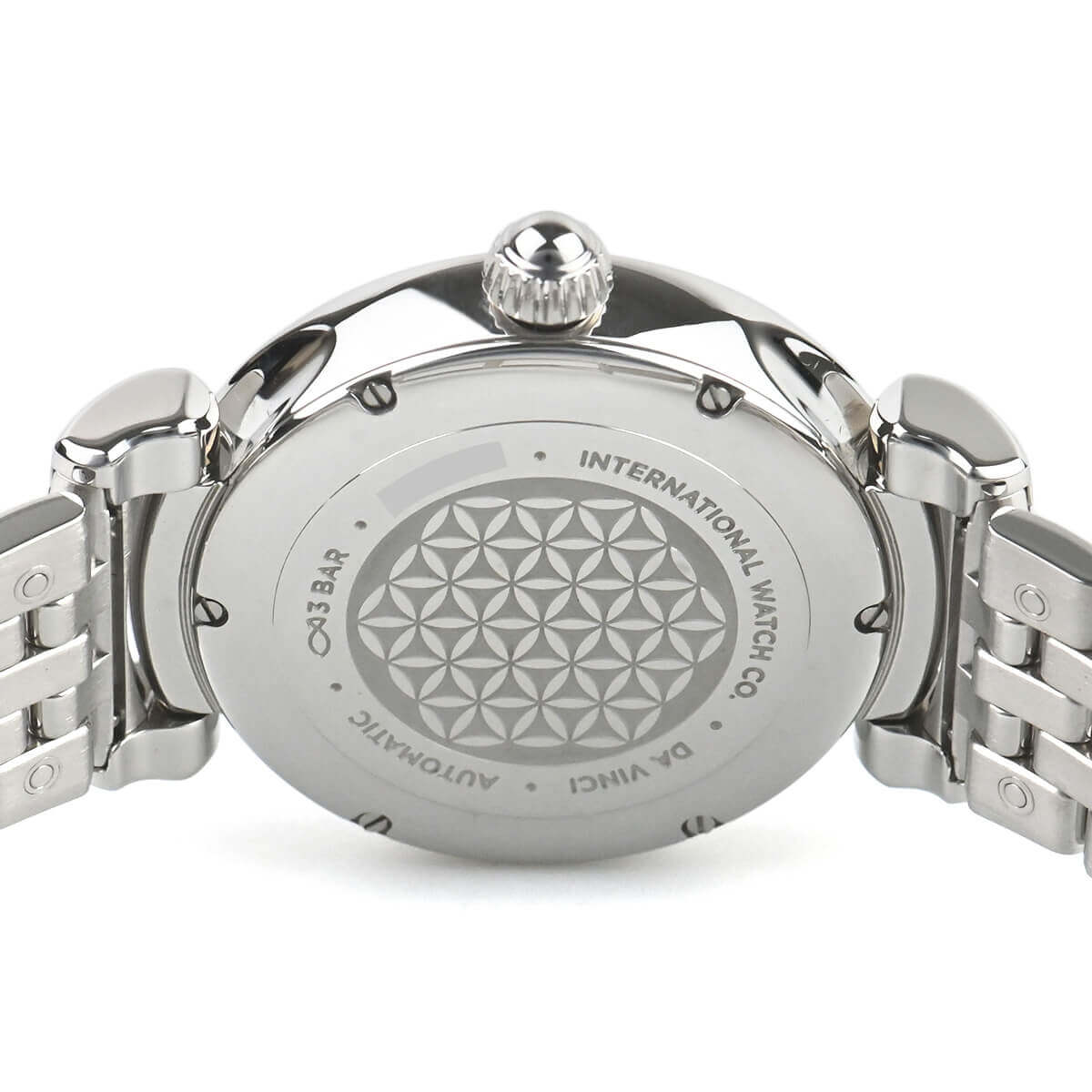 こちらの36mmケースの裏蓋には「フラワー・オブ・ライフ(生命の花)」と呼ばれる幾何学模様のエングレービングが施されています。