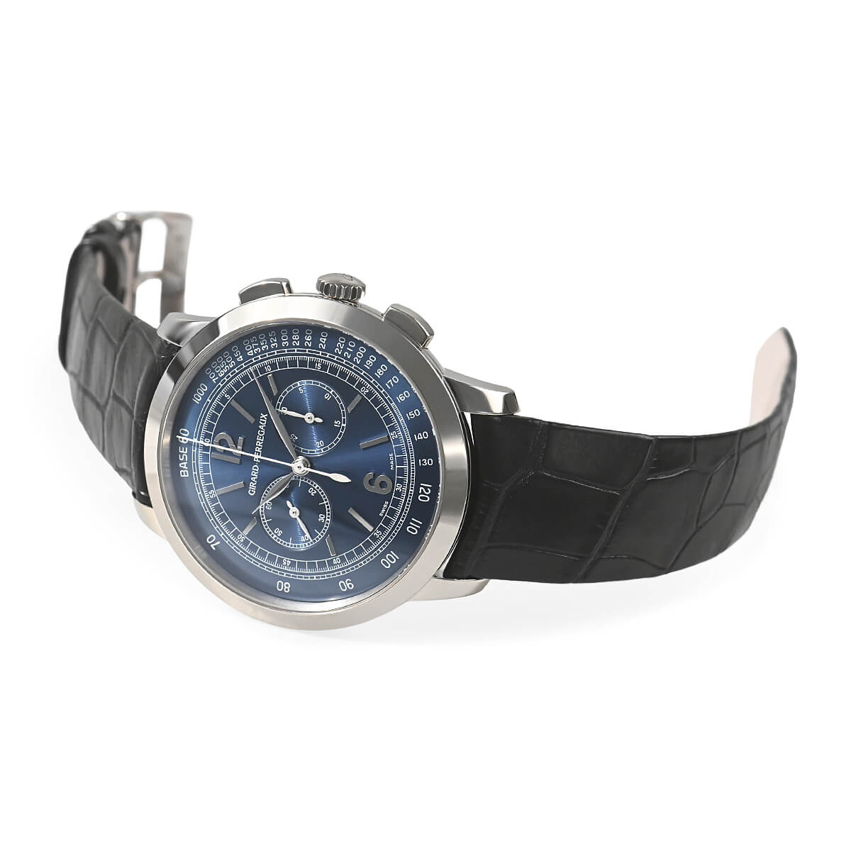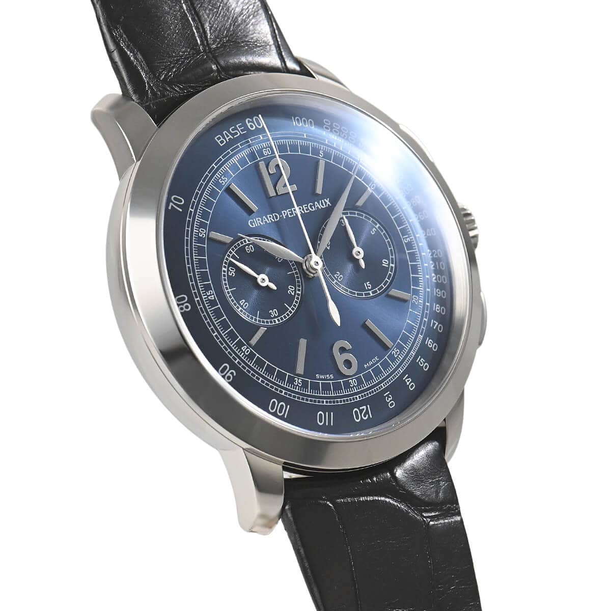 ジラール・ペルゴの名作角型ウォッチ「ヴィンテージ1945」の対抗馬として誕生した「ジラール・ペルゴ1966」。こちらはそのクロノグラフモデルです。