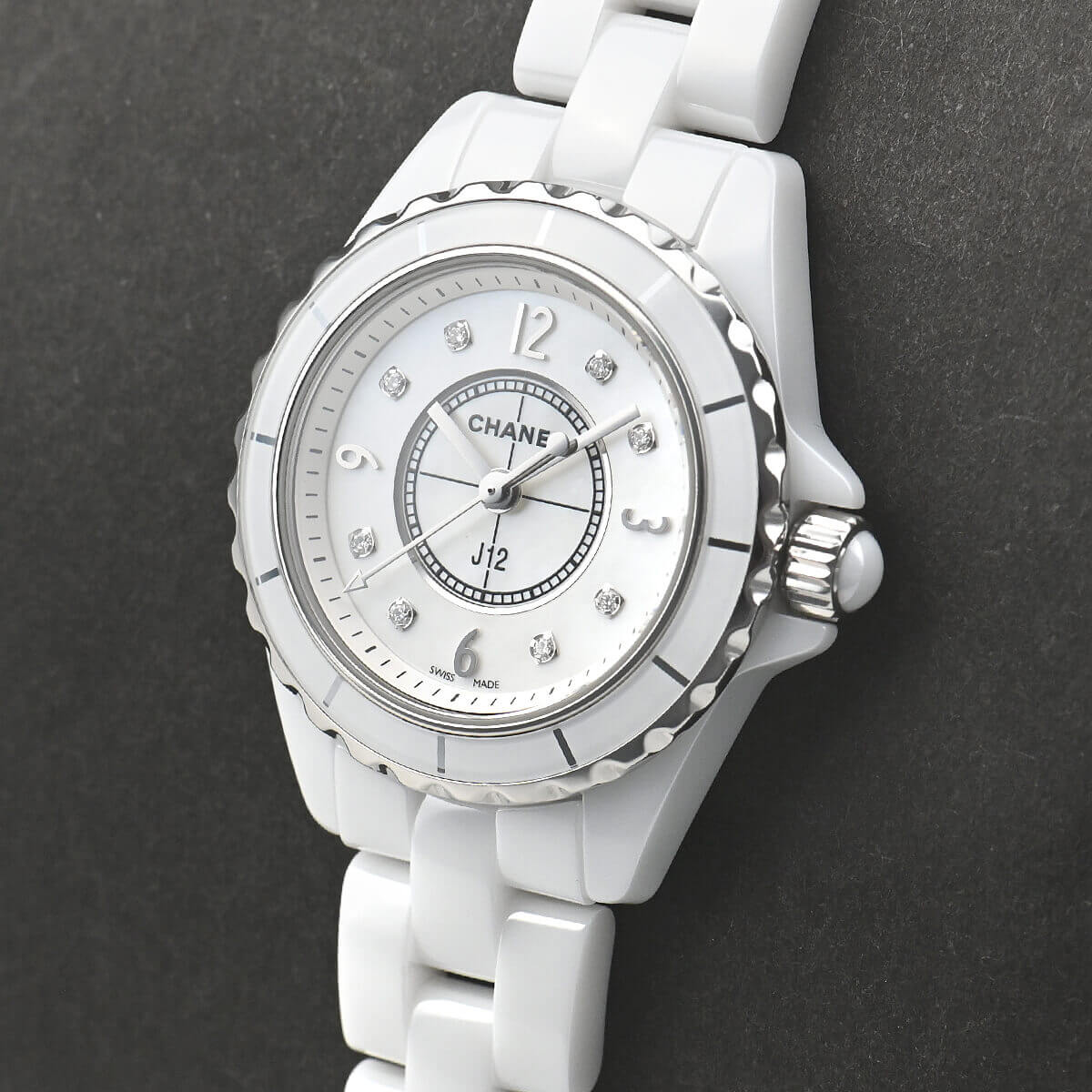 すっかりスポーティーなラグジュアリーウォッチの定番品として定着した感がある「J12」。こちらは29mmのレディースモデル。