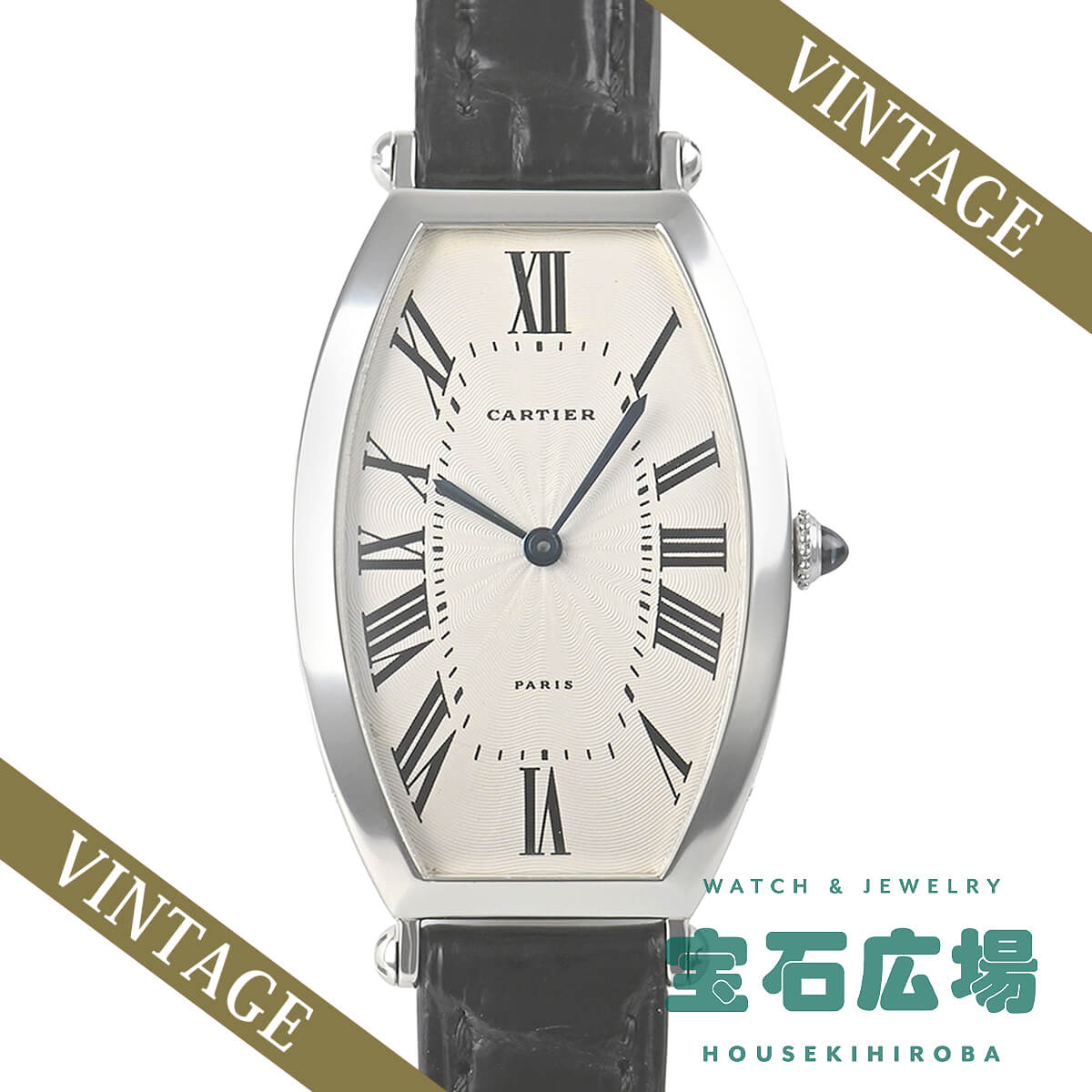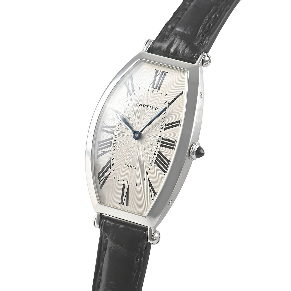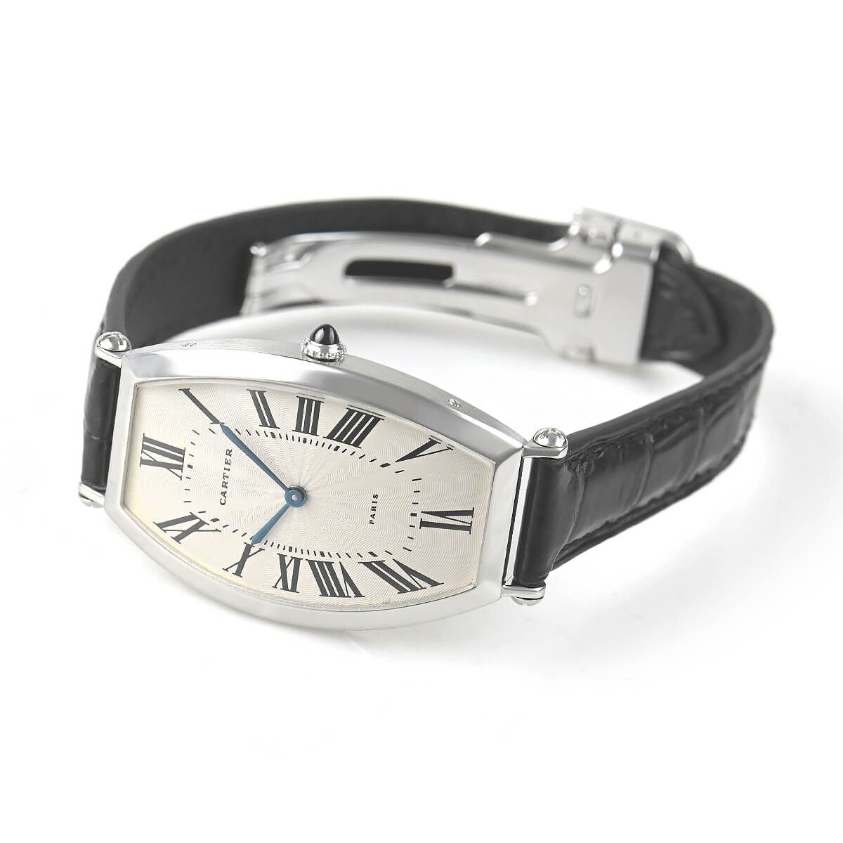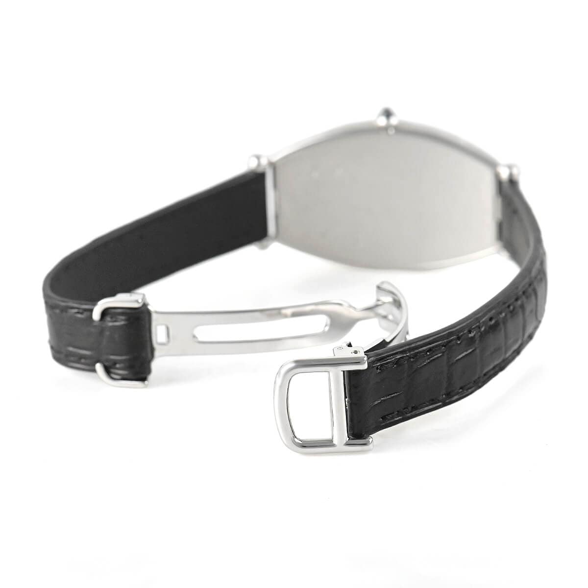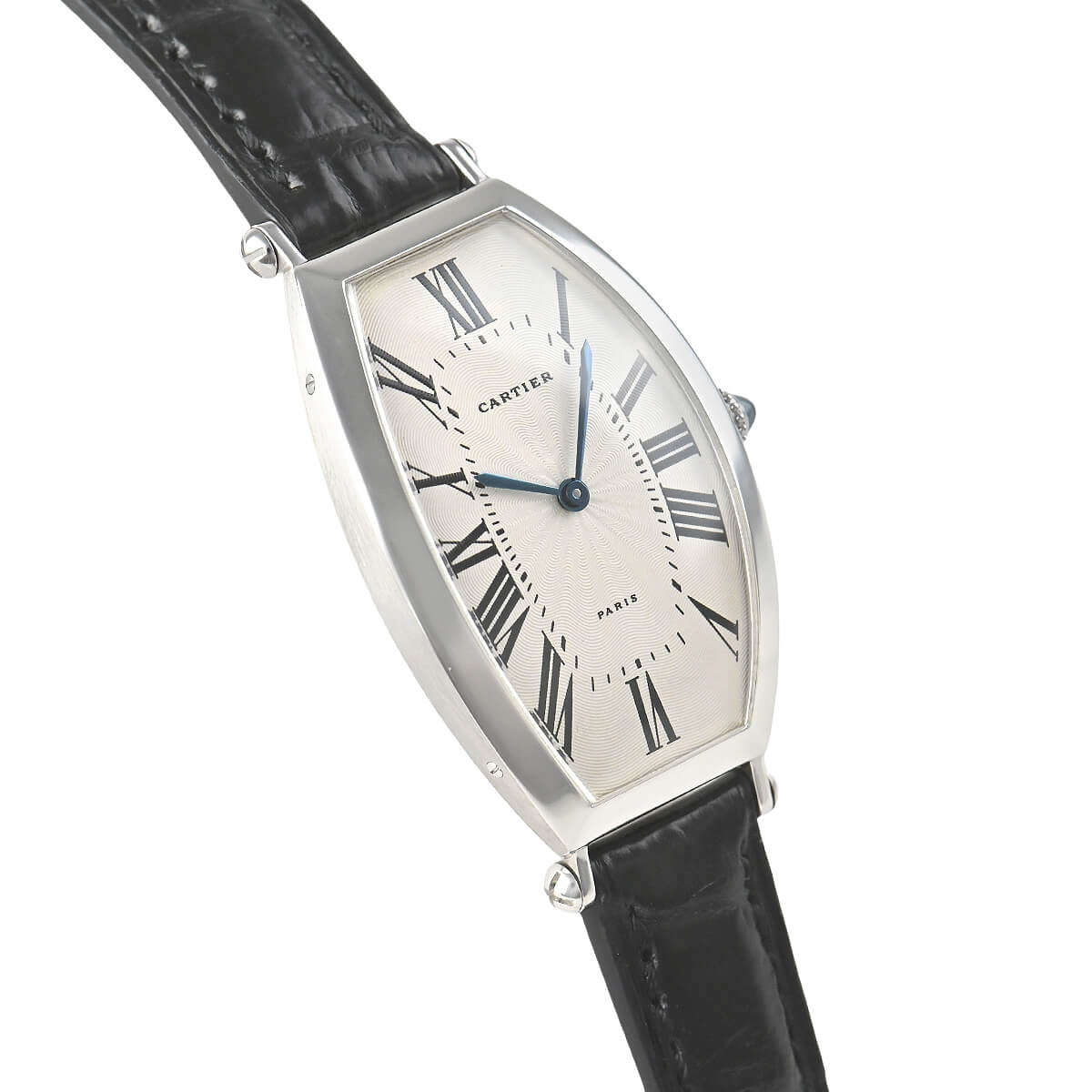 1906年より続くカルティエのコレクションの中でも、最も古いモデルの一つである「トノー」。こちらはそのプラチナモデルです。