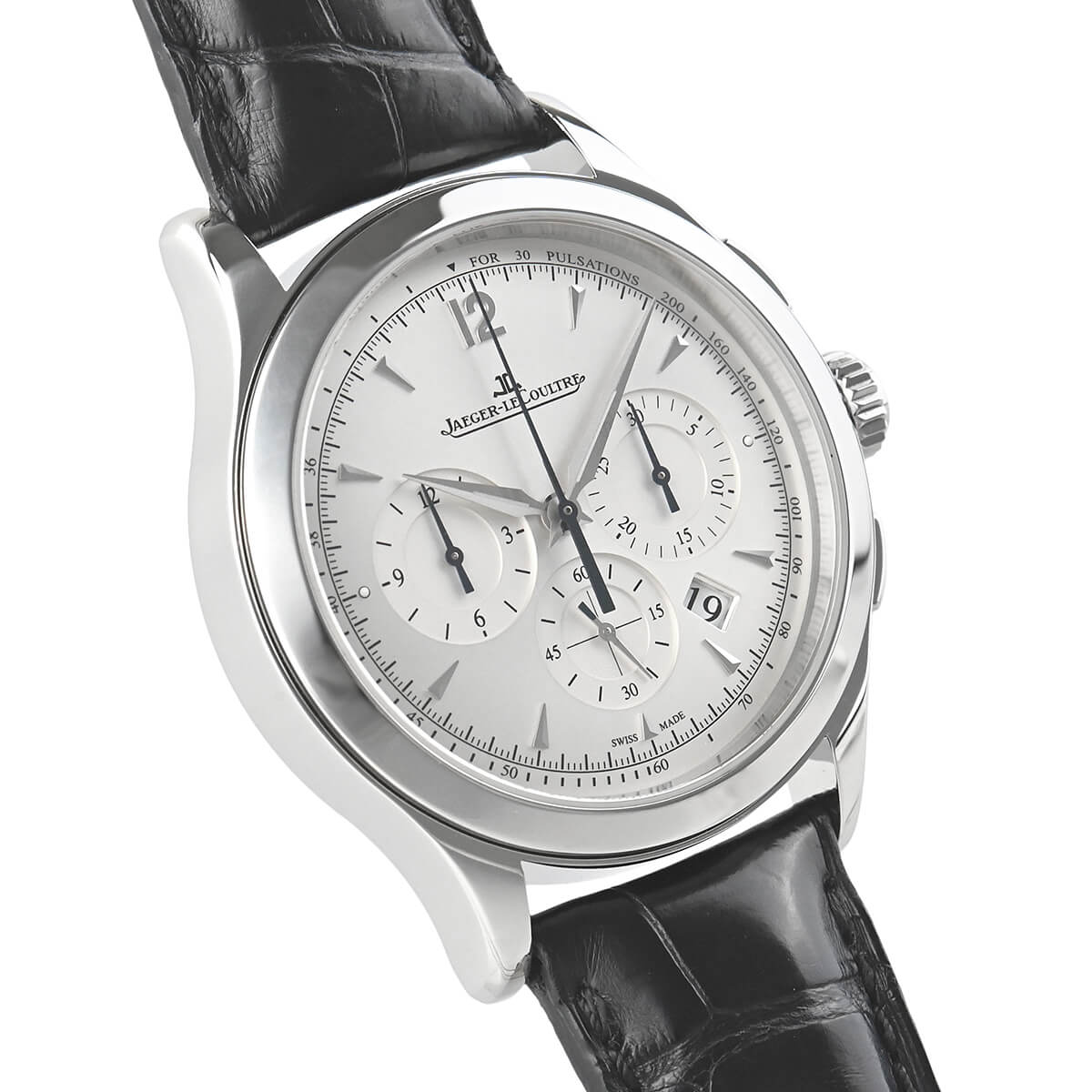 高い技術力を誇るマニュファクチュール、ジャガー・ルクルトですが不思議にもシンプルなクロノグラフは多くありません。その数少ないシンプルなクロノグラフがこの「マスタークロノグラフ」です。ムーブメントには、クロノ作動時に針飛びの少ない垂直クラッチを採用したCal.751A/1を搭載しています。