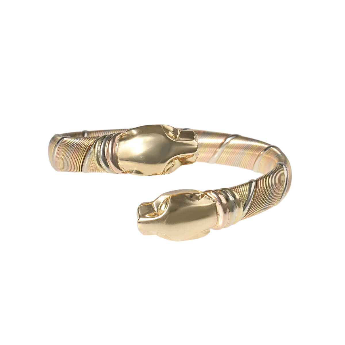 『Cartier(カルティエ)』のアイコン「パンテール」は、1914年にルイ・カルティエがこのネコ科の動物をカルティエ流にアレンジしたのが始まり。それをオート・ジョワイユ(特注宝石製作)界に君臨し、その世界に大きな影響を与えたジャンヌ・トゥーサンが引き継ぎ、この伝説の動物を壮麗なモチーフに仕上げ、メゾンの美学を体現していきました。以来ずっとパンテールは、獲物を捕らえたり、茶目っ気を見せたり、物憂げな様子だったりと、コレクションの変遷に合わせてその野性味あふれる多様な個性をあらわにしています。パンサーのヘッドを向かい合わせにデザインした「クーガー」の、スリーカラー製オープンバングル。いまとなってはとても珍しい、アーカイブデザインのパンテールジュエリーはコレクションにも。まさにカルティエの芸術性を具現化している、ひとめ見てカルティエとわかるメゾンの個性あふれるジュエリーです。