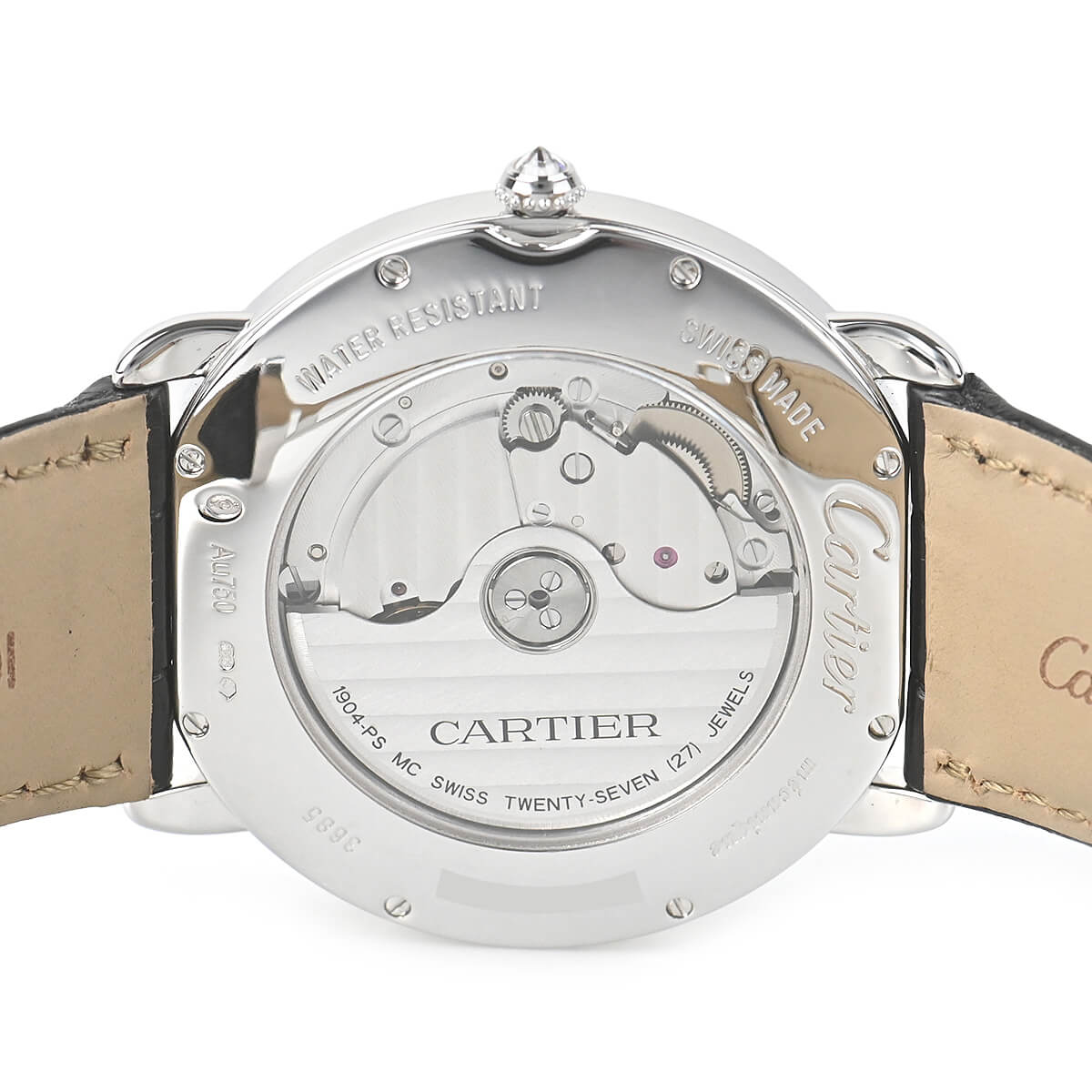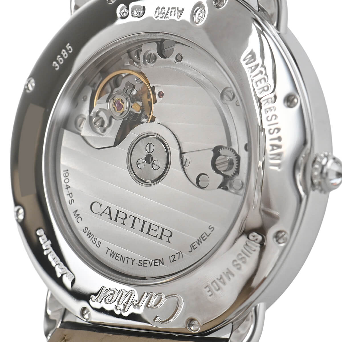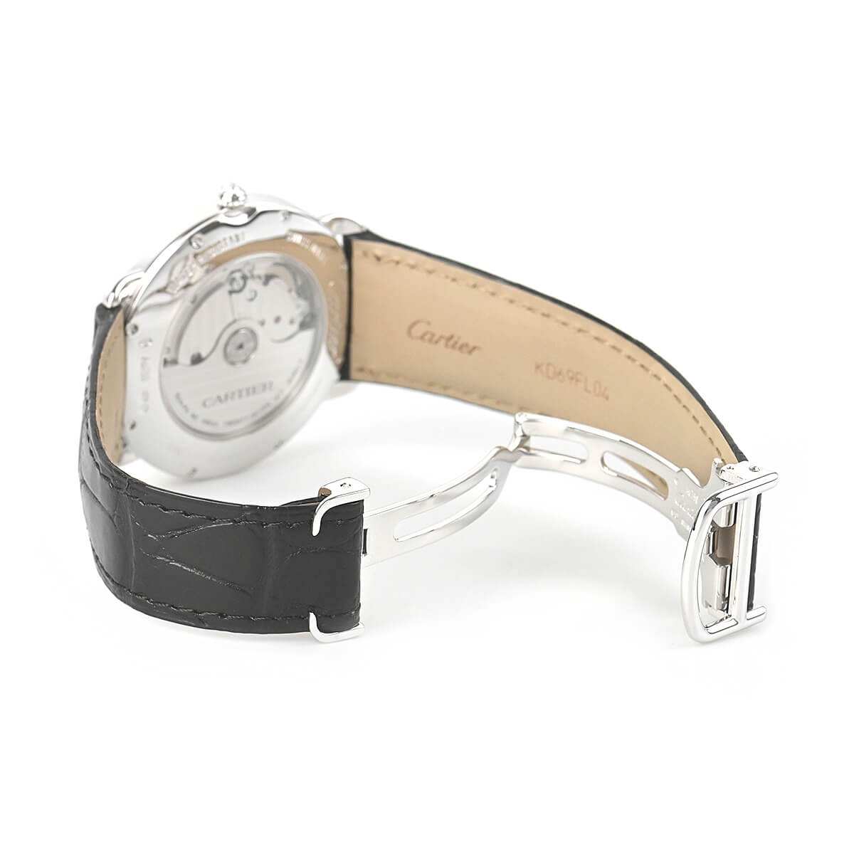 ローマインデックス、レイルウェイ分目盛り、ブルースチール製アップルハンドなど、カルティエらしいクラシカルなスタイルの「ロンド ルイ カルティエ」。こちらは40mmと大ぶりな時計で、ダイヤモンドで取り巻かれているにもかかわらず、上品な雰囲気が漂う一本です。