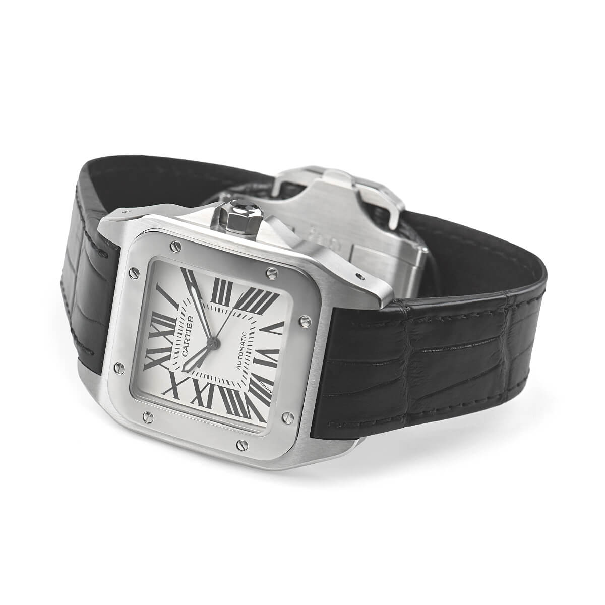 100年という長きに渡り歴史を刻んできたサントスシリーズ。航空機の機体のようにビスをベゼルに使い、タフなデザインと美しさを兼ね備えております。