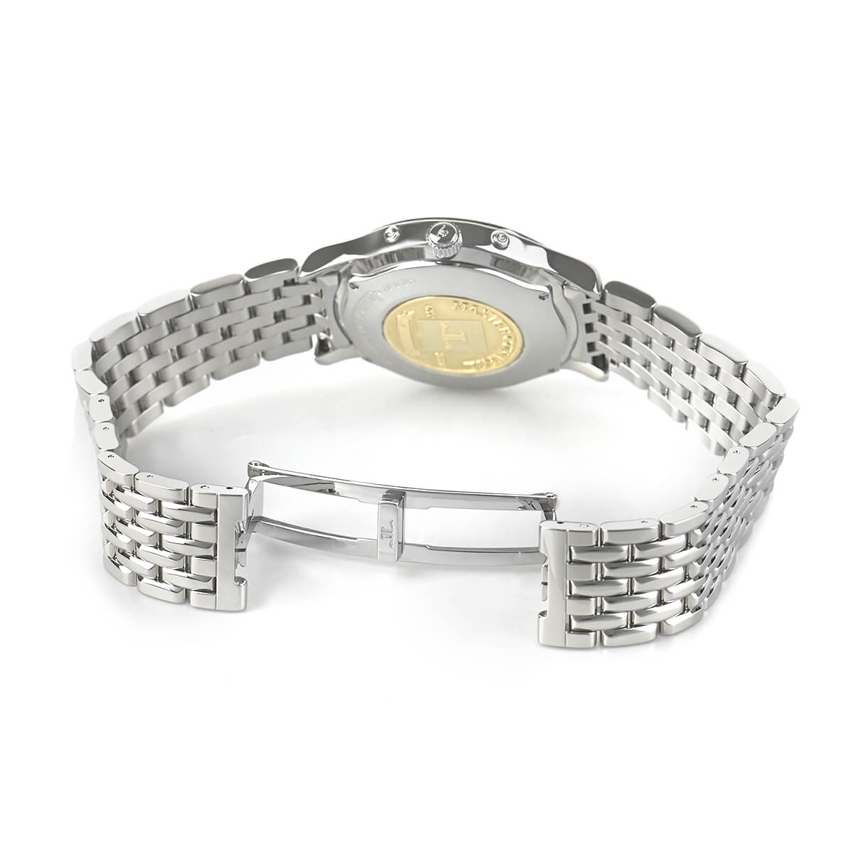 トリプルカレンダーとスモールセコンドを搭載した「マスターデイト」。自社での1000時間にも及ぶ「1000時間コントロールテスト」を合格した自社製ムーブメントを搭載しています。