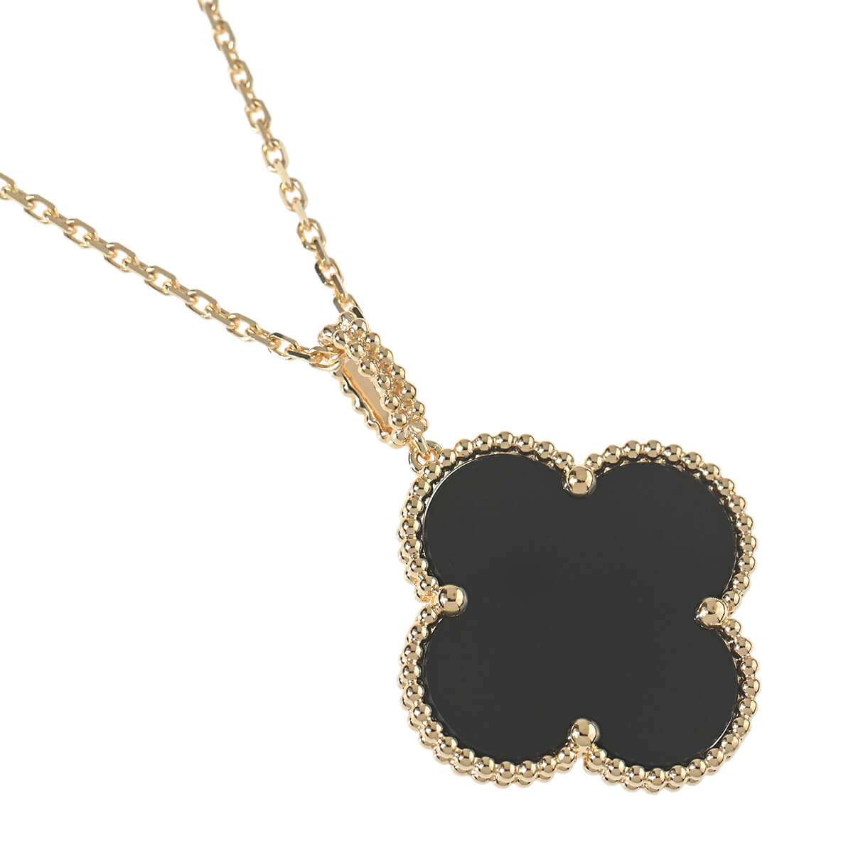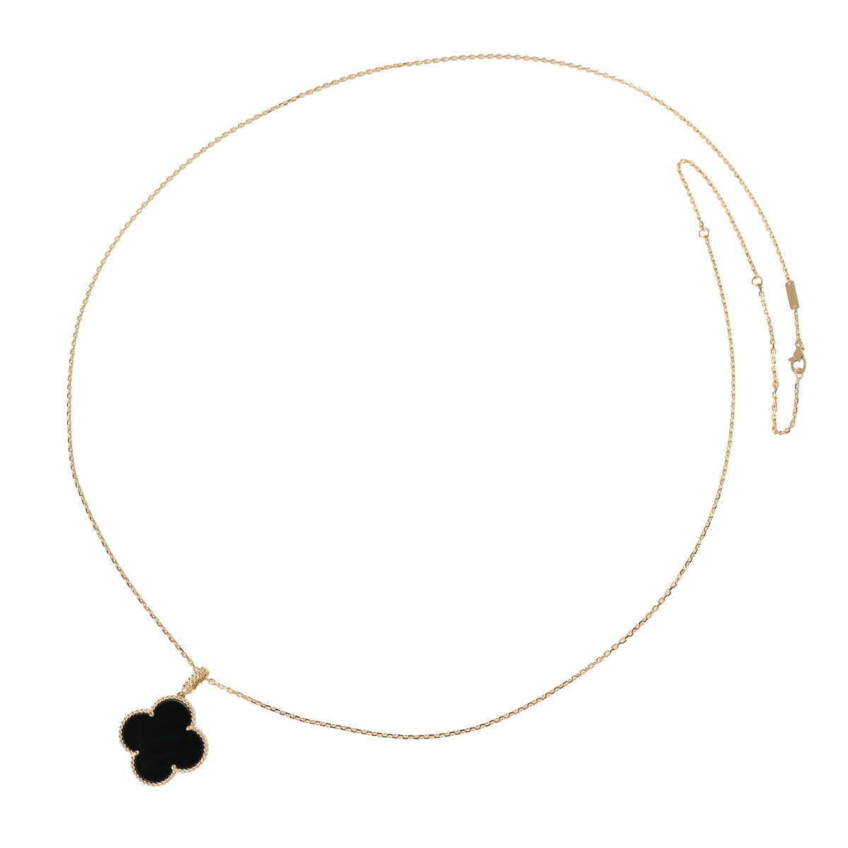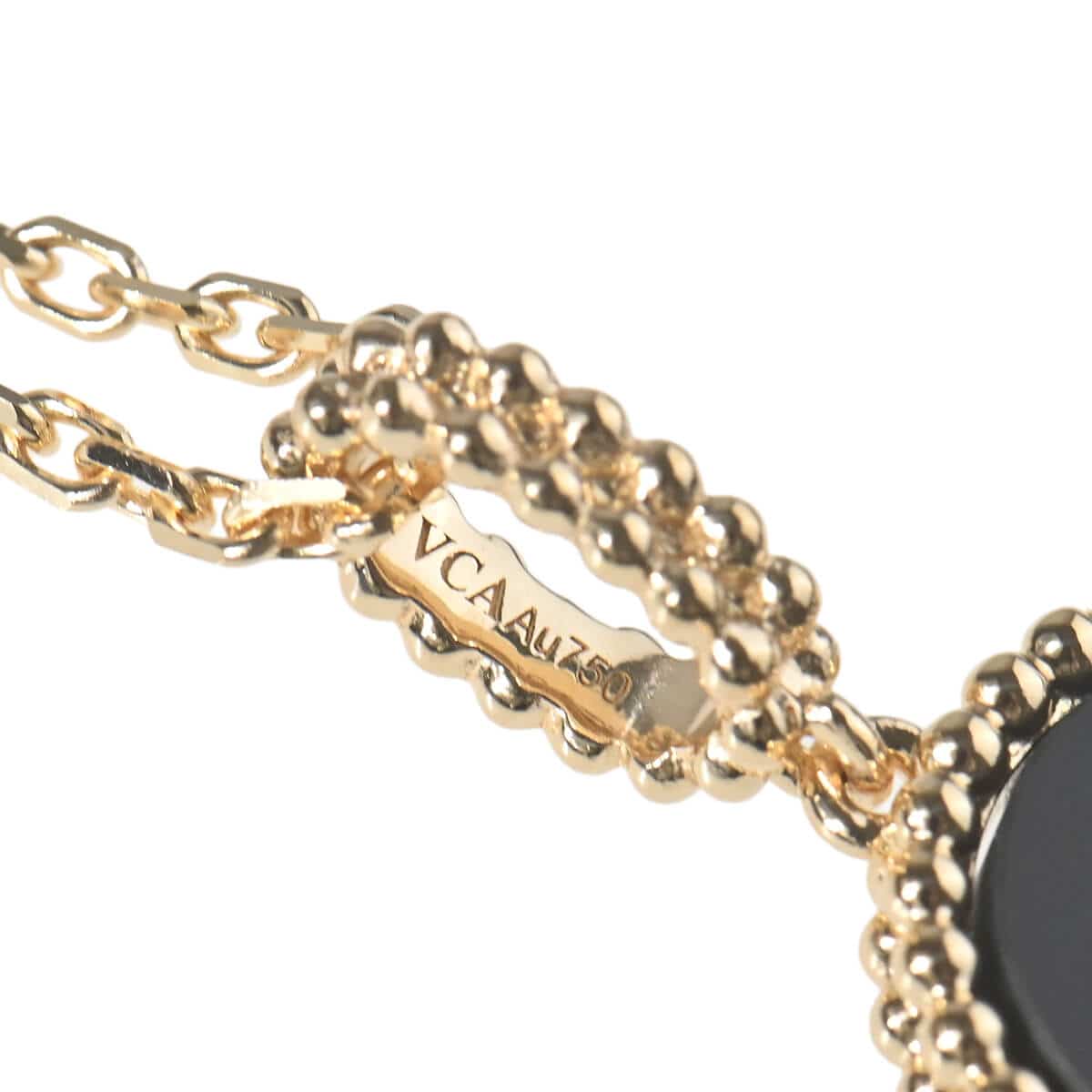 1968年に初めて誕生した幸運のシンボル「アルハンブラ」の特徴を受け継ぎ、『VanCleef&Arpels(ヴァンクリーフ&アーペル)』ならではの独創性と時を超えるエレガンスを湛える「ヴィンテージアルハンブラ」コレクションは、エレガントで清楚、控えめでありながら洗練された、メゾンを代表するアイコン。2006年にヴァンクリーフ&アーペルが新たに制作した「マジックアルハンブラ」は、さまざまなサイズのアルハンブラモチーフが作品に輝きと色彩をもたらし、楽しげなハーモニーを奏でる魅惑的なコレクションです。イエローゴールドビーズに縁取られたアイコニックなオニキスのクローバーモチーフが、約90cmものロングチェーンにひとつあしらわれた、定番アルハンブラとは違う、ドラマティックな存在感たっぷりのペンダント。ひとめでそれとわかるラッキーチャームを、どのタイミングで、どのカラーで迎えるかを考えるのも楽しい、エレガントに映えるハッピーな魅力にあふれたコレクションジュエリーです。