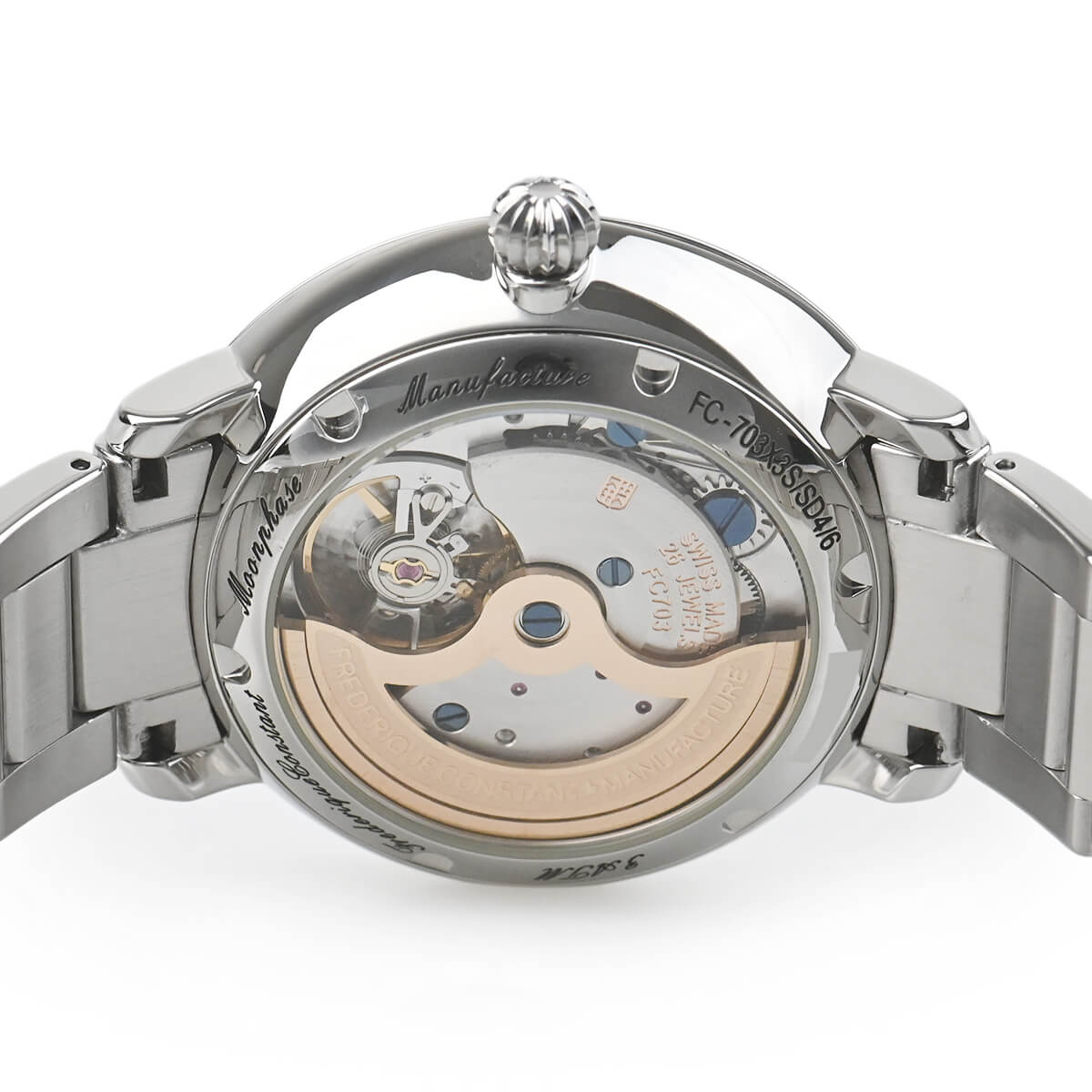 ケースはシースルーバックになっており、自社製ムーブメントの「Cal.FC-703」を鑑賞することが可能です。