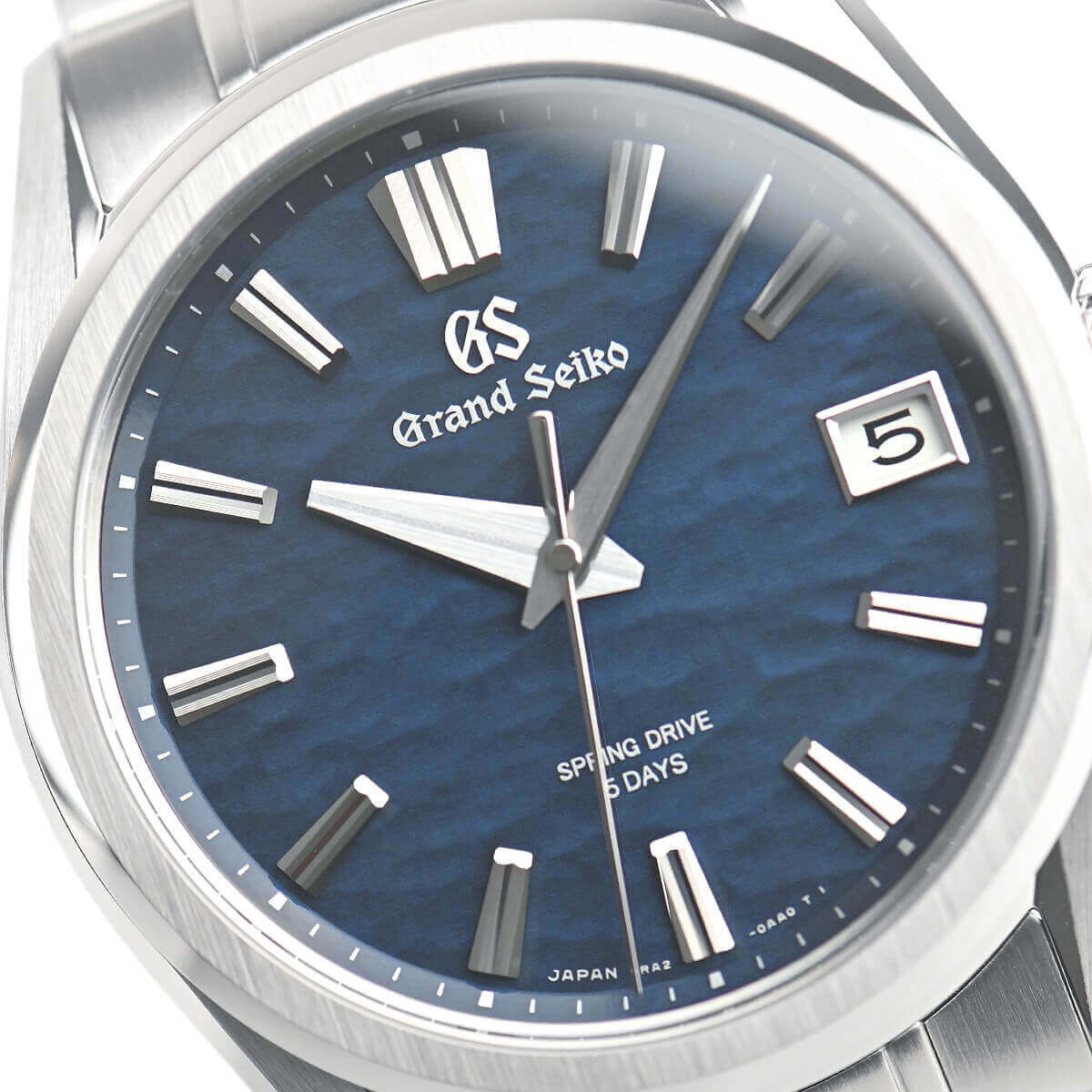 濃紺のダイヤルはグランドセイコーのスプリングドライブを生み出す「信州 時の匠工房」の近くに位置する「諏訪湖」の情景に着想を得てデザインされています。