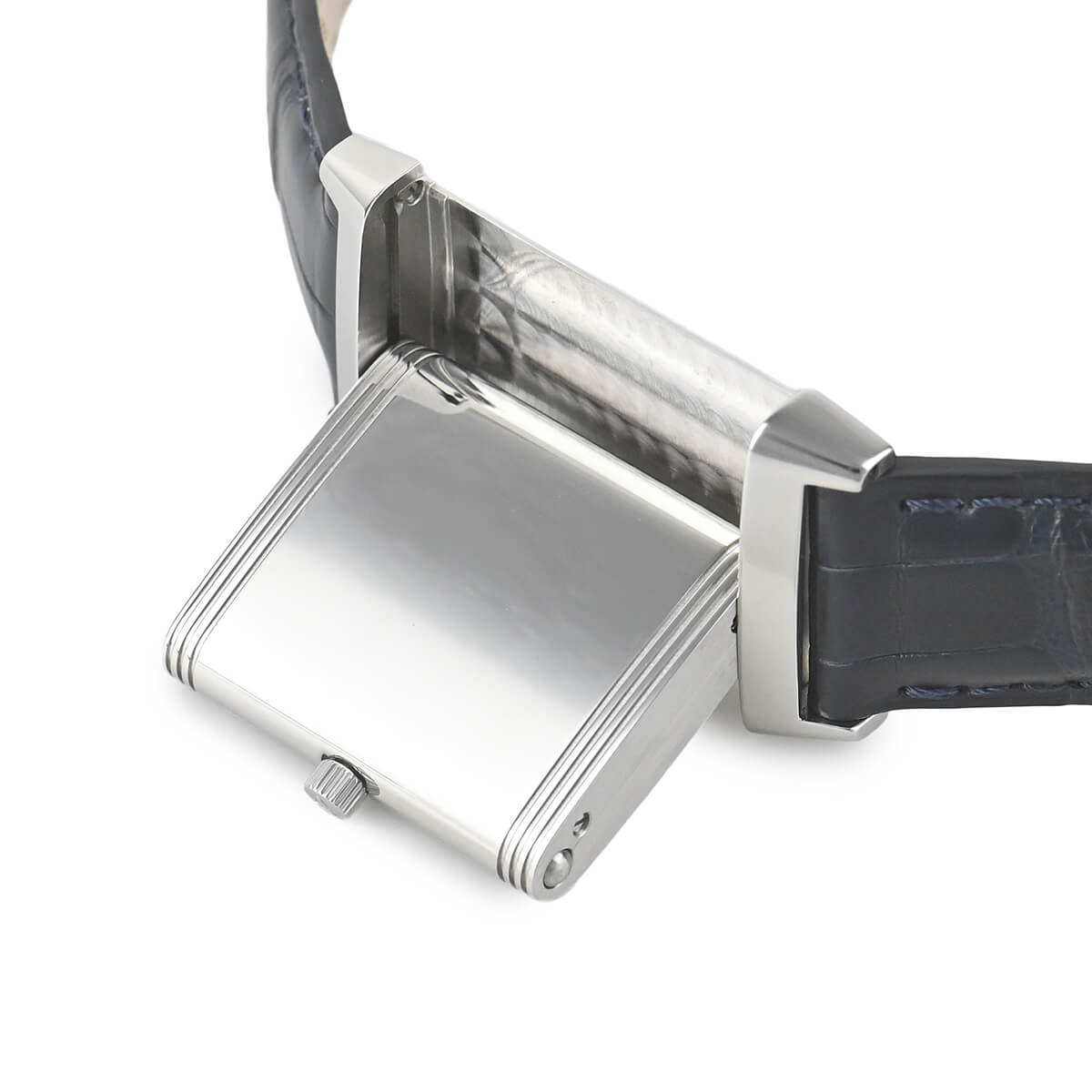 近年のレベルソはサイズアップされて大型化しておりますが、こちらは今となっては少し小振りのクラシカルなタイプです。ケースを反転させると裏側には何も無い、レベルソ本来の姿になっています。このモデルは手巻きとクォーツの2種類発売されていますが、今回入荷したのは手巻きモデル。ムーブメントに定評のあるブランドだけに拘り派の方にお薦めですね。
