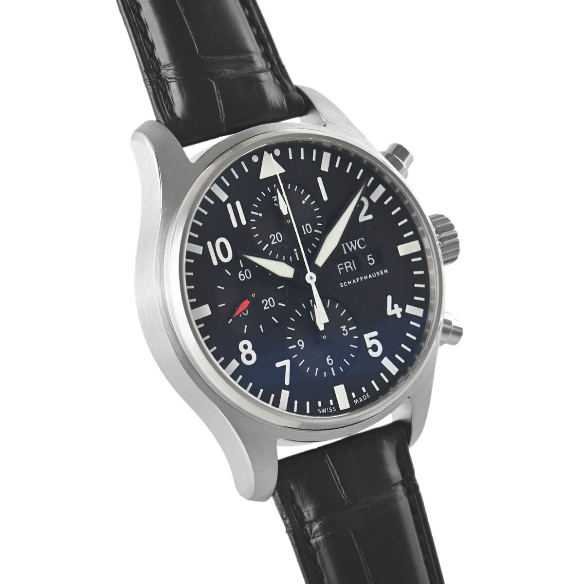 2016年に発表された「パイロットウォッチ・クロノグラフ」。前モデルではデイト表示に3日間表示を採用していましたが、今作では一般的な1日表示方法に回帰されています。