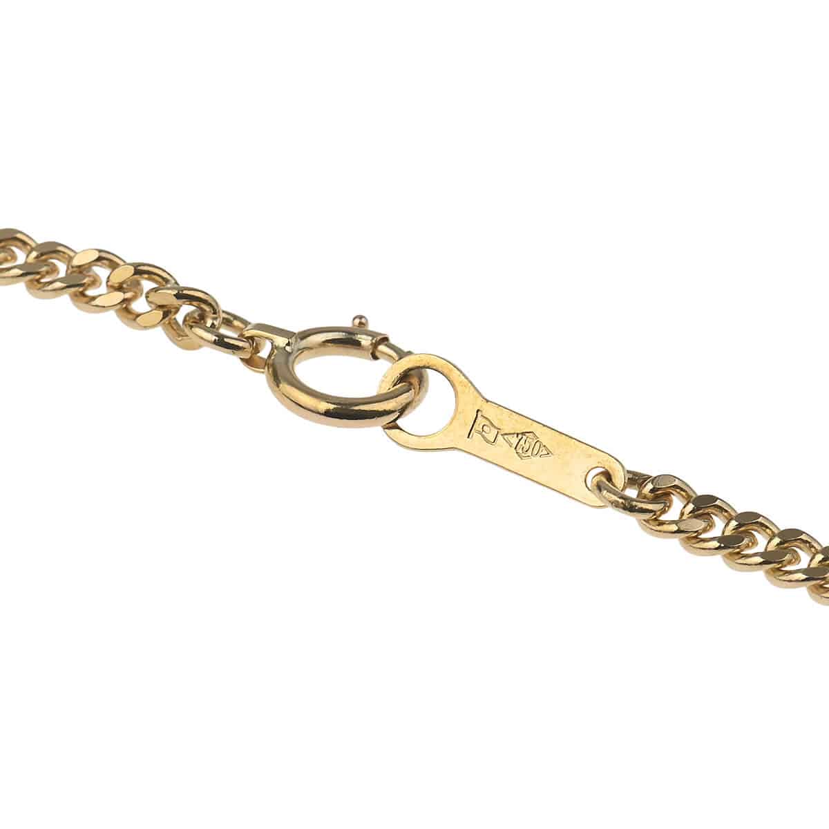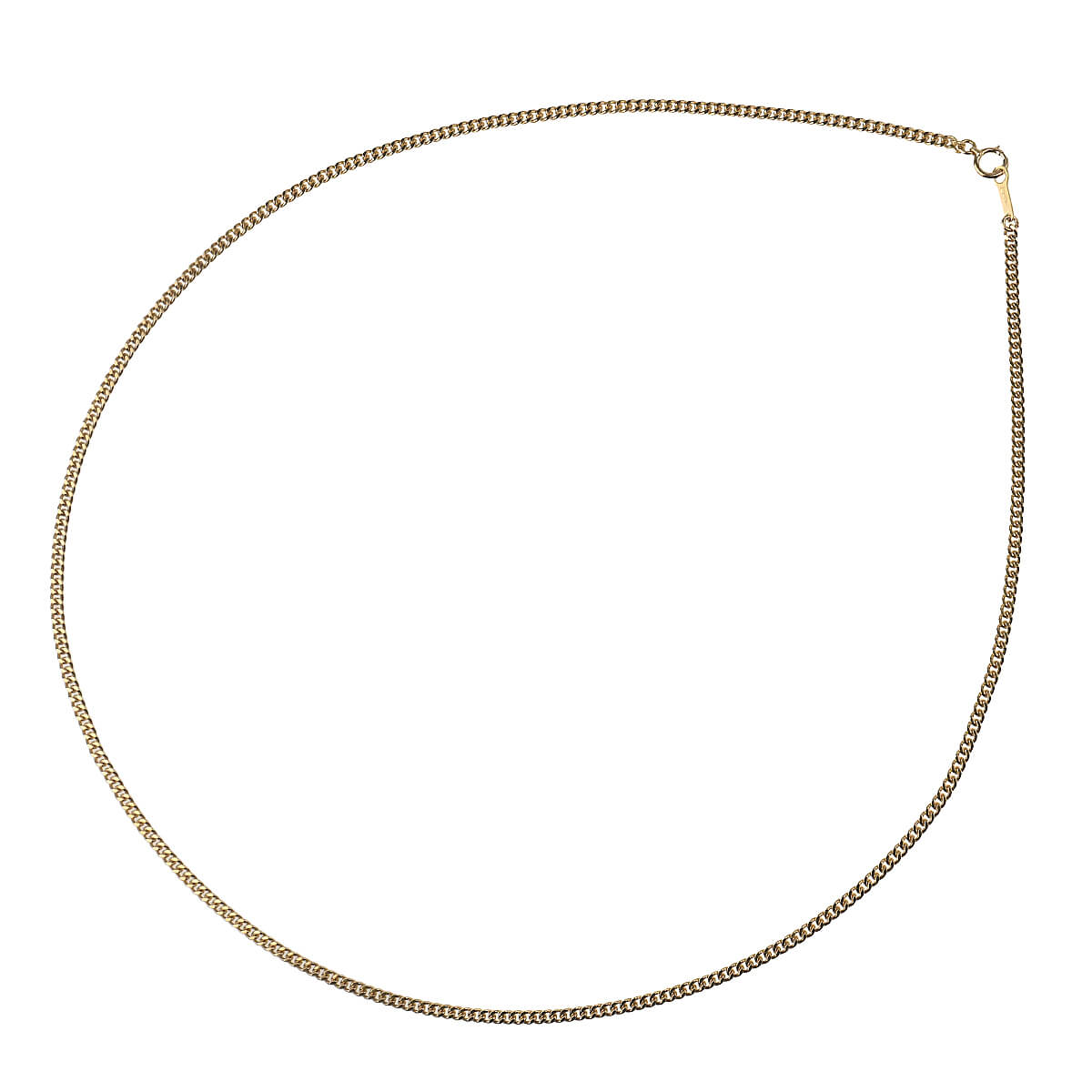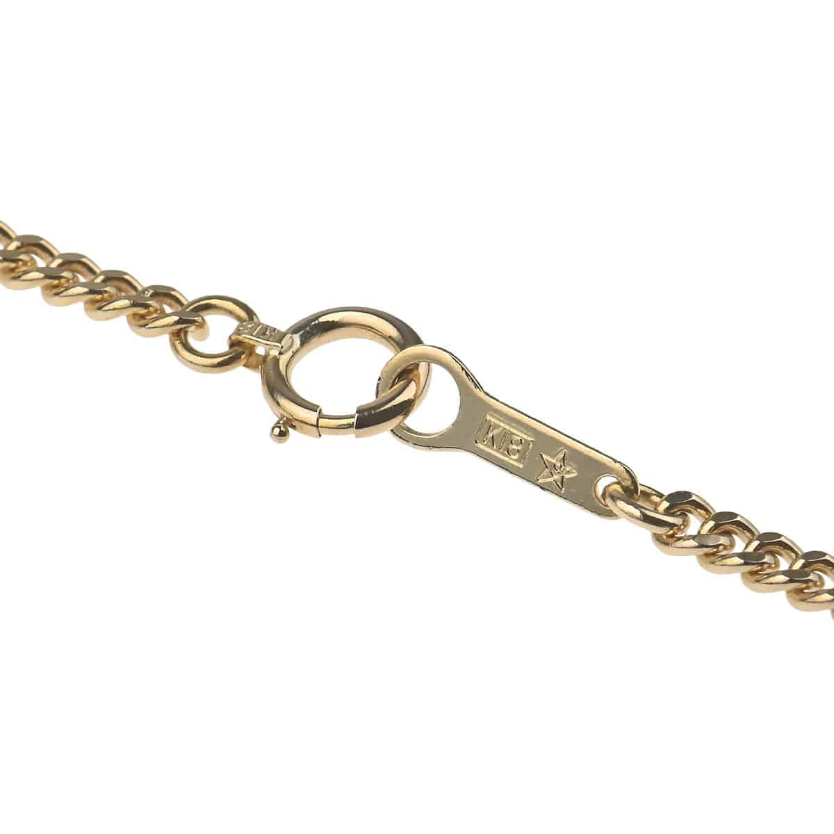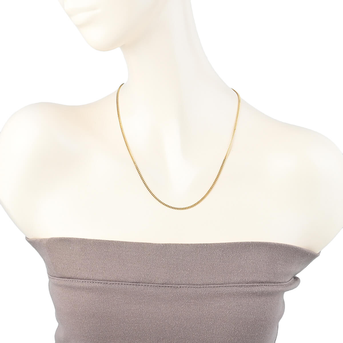 約50センチ、幅約2.6ミリ、約11グラムの、細めのイエローゴールド製2面シングルキヘイチェーンネックレス。キヘイチェーンとは、あずき型のチェーンを90度ひねり、さらに押しつぶしたつくりのデザインチェーンのこと。押しつぶした面が綺麗に並んで同じ面を向き、連続していることによるなめらかな輝きが魅力のデザインチェーンです。上下2平面にカットが施された2面シングルのキヘイチェーンは、カジュアルでスタンダードなデザイン。1本でつけるのはもちろん、ヘッドをとおしたり、レイヤードしたり、シンプルに使えるデザインが魅力。資産価値にも注目されるキヘイは他のチェーンとは違い、単なる装飾品としてだけでなく身につける資産としても人気です。