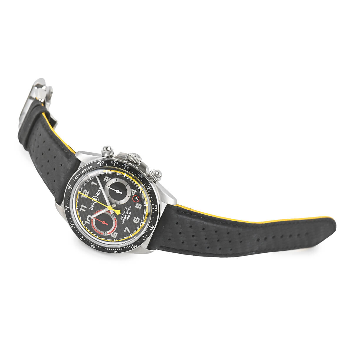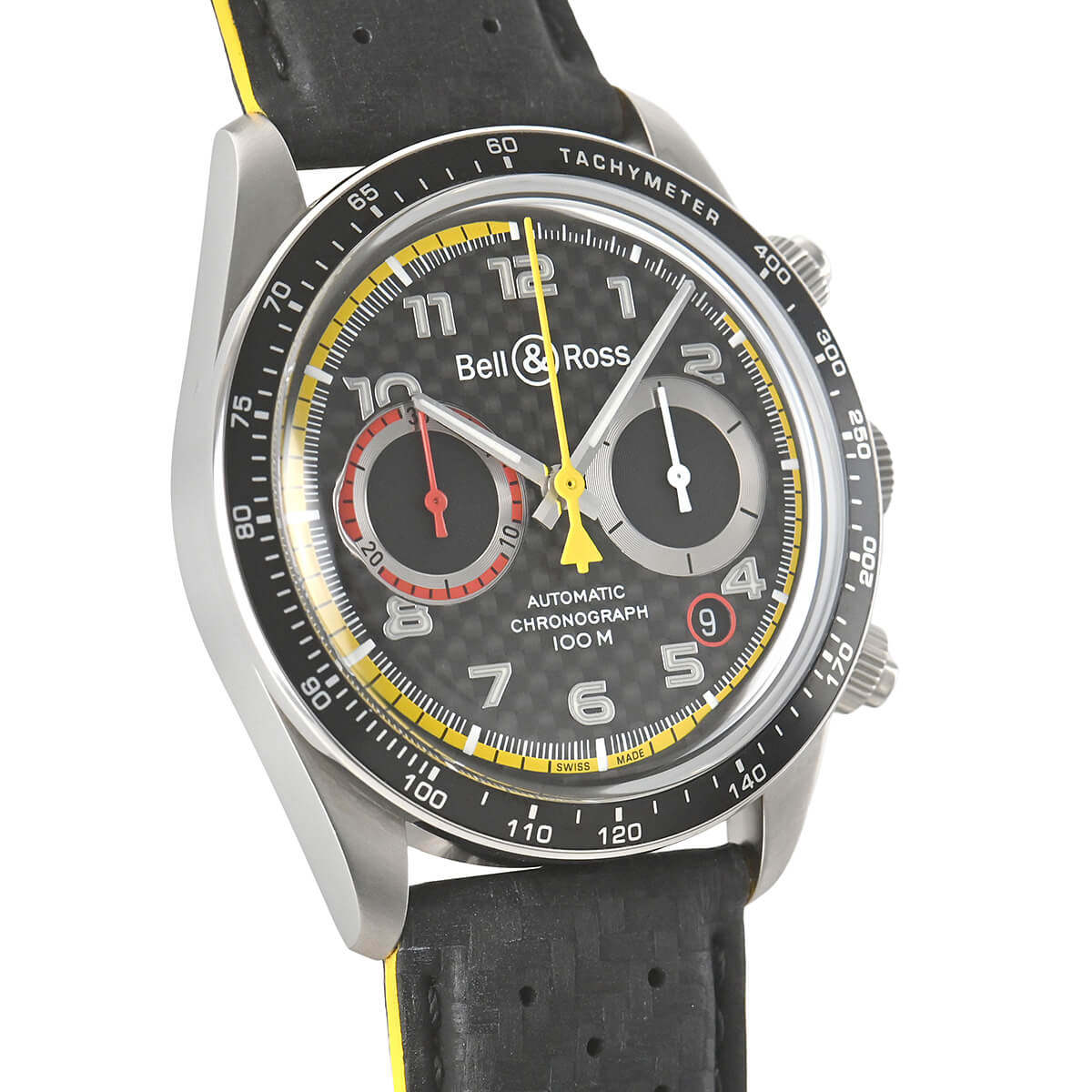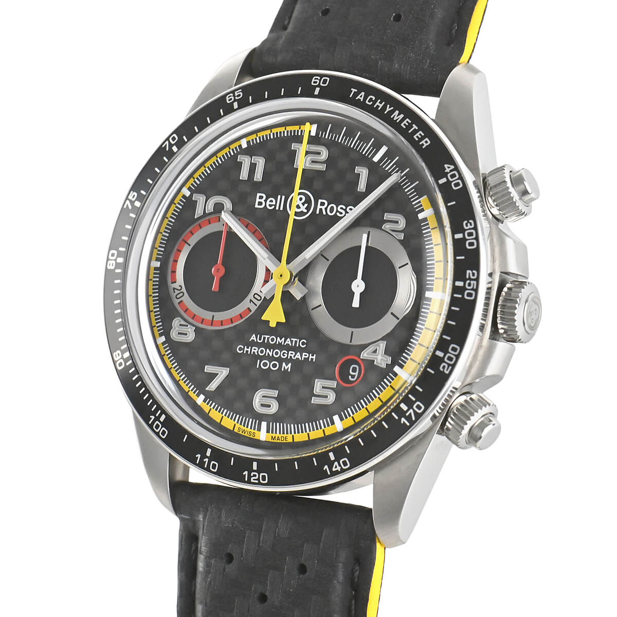 1992年にフランスのパリで創業した新興ブランドのBELL&ROSS。こちらのヴィンテージBRシリーズは1940年代のパイロットウォッチに現代の解釈をプラスしてデザインされたシリーズです。【BRV294-RS18/SCA】はベル&ロスがルノー・スポールF1チームの公式タイムキーパーになったのを記念して作られたツーカウンタークロノグラフ。ルノーのF1マシンを思わせるカラーリングが素敵です。