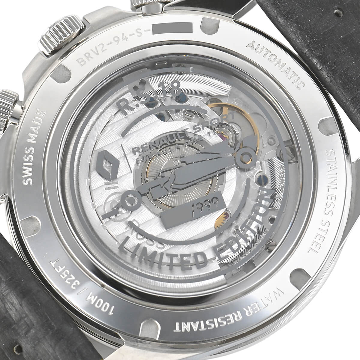 裏蓋はシースルーバック仕様となっており、ローターやテンプの動きがお楽しみ頂けます。世界限定999本のリミテッドモデル。