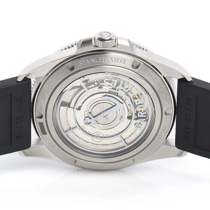 裏蓋はシースルーバック仕様となっており、ローターやテンプの動きがお楽しみ頂けます。