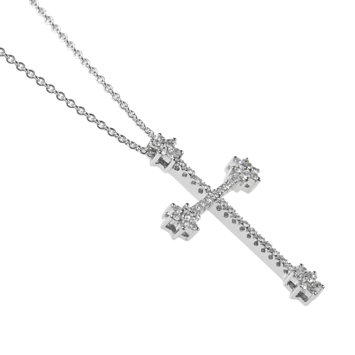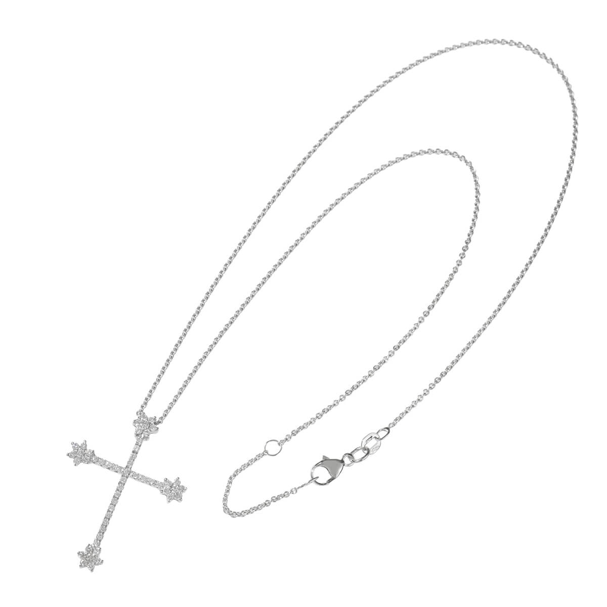 イタリア、フィレンツェ最古の橋であり、建造以来橋上に金細工師の商店が並んでいた、アルノ川にかかる石造アーチの橋“ポンテヴェキオ橋”の名を冠した『PonteVecchio(ポンテヴェキオ)』は、1981年の創業以来“Romantic Luxury(ロマンティック ラグジュアリー)”をキーワードに、ジュエリーが紡ぎだすロマンティックな物語や熟練の職人技術によって表現されるラグジュアリーな価値を、遊び心あふれるファインジュエリーに昇華し続けています。定番クロスモチーフをポンテヴェキオらしくデザインした、ホワイトゴールド製ペンダントネックレス。ダイヤモンドクロスのそれぞれの先端にダイヤモンドフラワーを飾ったデザインは、存在感たっぷり。ポンテヴェキオらしくどんなスタイリングにも愛らしい大人の個性と遊び心を添えてくれる、美しく上質なダイヤモンドジュエリーです。