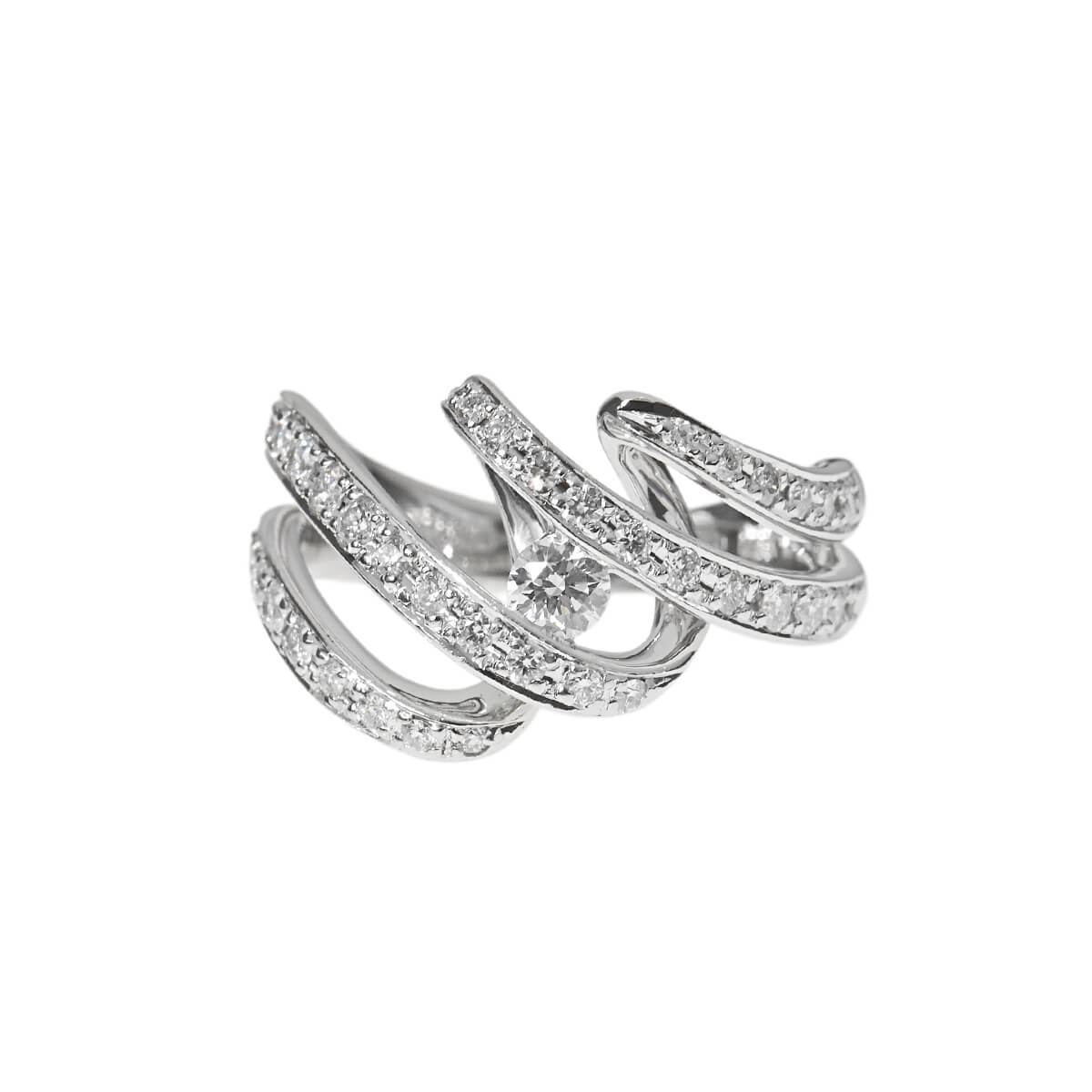 1981年に誕生したドメスティックブランド『HOSHI no SUNA(星の砂)』。“本当に欲しいもの、いいものだけを自分の感性で見つけたい。流行よりも、いつまでも愛せるジュエリーと出会いたい。”という確かな価値を知る、自分の個性を大切にする大人のためのジュエリーブランドです。ダイヤモンドラインで描かれた有機的なカーブが形づくる立体フォルムが美しい、プラチナ製リング。様々な角度からの表情が楽しめるデザインが、指先を洗練された個性で印象づけます。光に反射して煌めくたっぷりのマテリアルとダイヤモンドのコントラストが輝きのコントラストを魅せる、美しく上質なダイヤモンドジュエリーです。