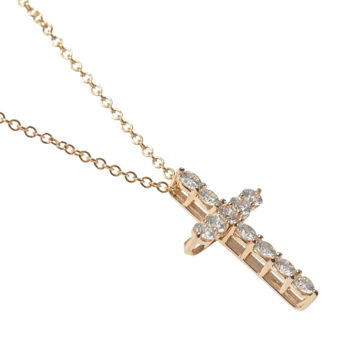 ダイヤモンドのエンゲージメントリングを永遠の愛のシンボルとして確立させた「チャールズ・ルイス・ティファニー」が1837年にアメリカで創業以来、息を飲むほど美しい傑作の数々を創造してきた『TIFFANY&Co.(ティファニー)』は、時代をリードしながら常に上質なエレガンスを表現し、今やジュエリーのスタイルのスタンダードとなりました。トータル約0.42ct、11石の眩く煌めくティファニーダイヤモンドで描かれたスモールサイズのクロスモチーフがあしらわれた、イエローゴールド製ペンダントです。洗練された美しい存在感をもつティファニー定番のクロスペンダントは、ワーキングシーンから休日カジュアルまで幅広いスタイリングで活躍します。異なるモチーフとの相性も良いシンプルなクロスは、お手持ちのペンダントとスタッキングして自分らしいスタイルを楽しむのも。煌めくクロスがデコルテに寄り添って、スタイリングを惹きたてながら、日常に本物の輝きを添えてくれますね。