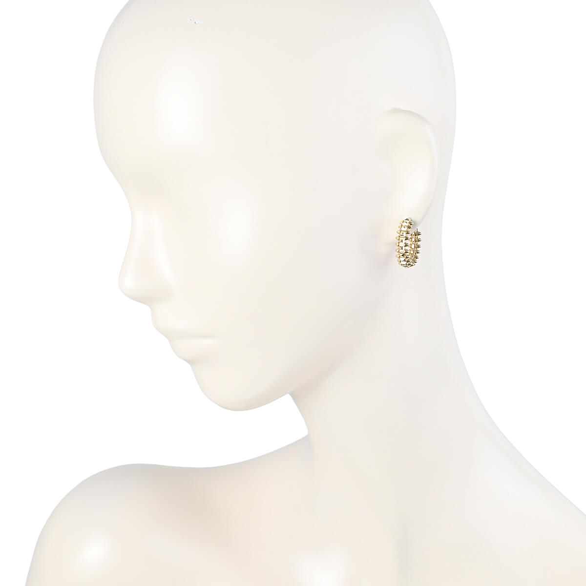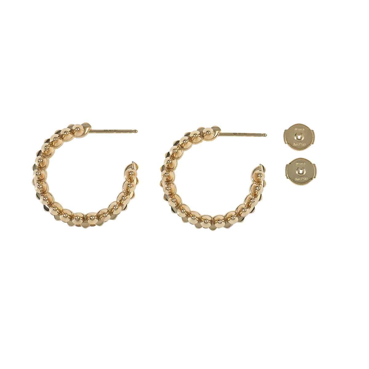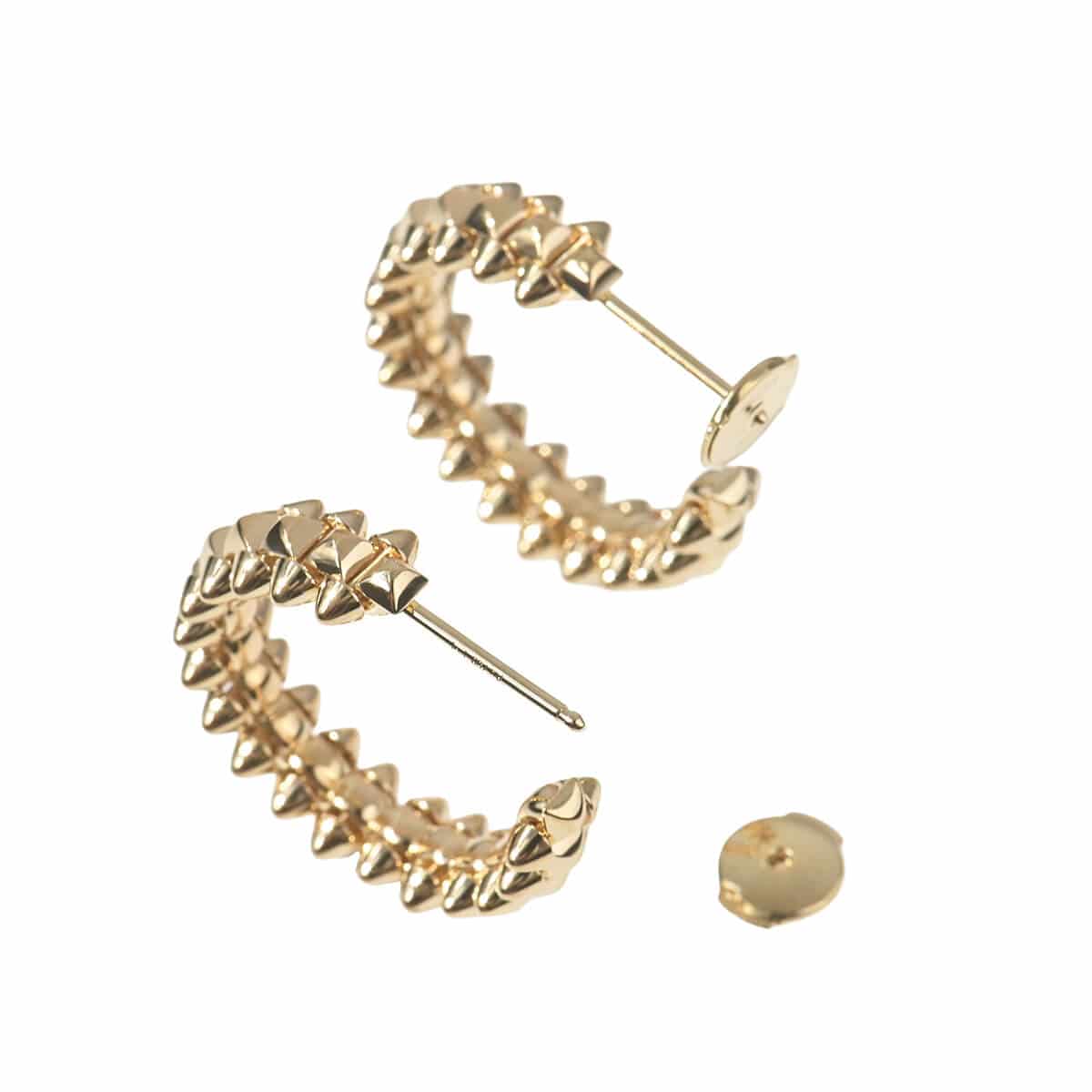 クラシックなフォルムとそこからの解放、削ぎ落されたラインと有り余るエネルギー、真面目さとちょっと羽目を外す感覚、そんな相反するものを同時に主張する「クラッシュ ドゥ カルティエ」コレクション。ジオメトリック、スタッズ、クル カレ、そしてクリエイティブな遊び心、そんな『Cartier(カルティエ)』の象徴的で伝統的なデザインコードをモダンに解釈し独創的に組み合わせた、斬新でシックなこのコレクションは未来に引き継がれるアイコンです。フランス語で“スクエア(正方形)”を意味する「カレ」から生まれたカルティエの象徴的なコードのひとつ「クル カレ」がライン中央に並び、その両サイドにあしらわれた「ピコ」と呼ばれる円錐状のスタッズと幾何学的なデザインコントラストを描く、イエローゴールド製フープピアス。ジオメトリックでありながらどこかフェミニン、ミニマルなデザインでありながら複雑な構造を持つ、相反するふたつの魅力を同時に主張するそのフォルムが美しく、カルティエらしい洗練を纏ったピアスです。
