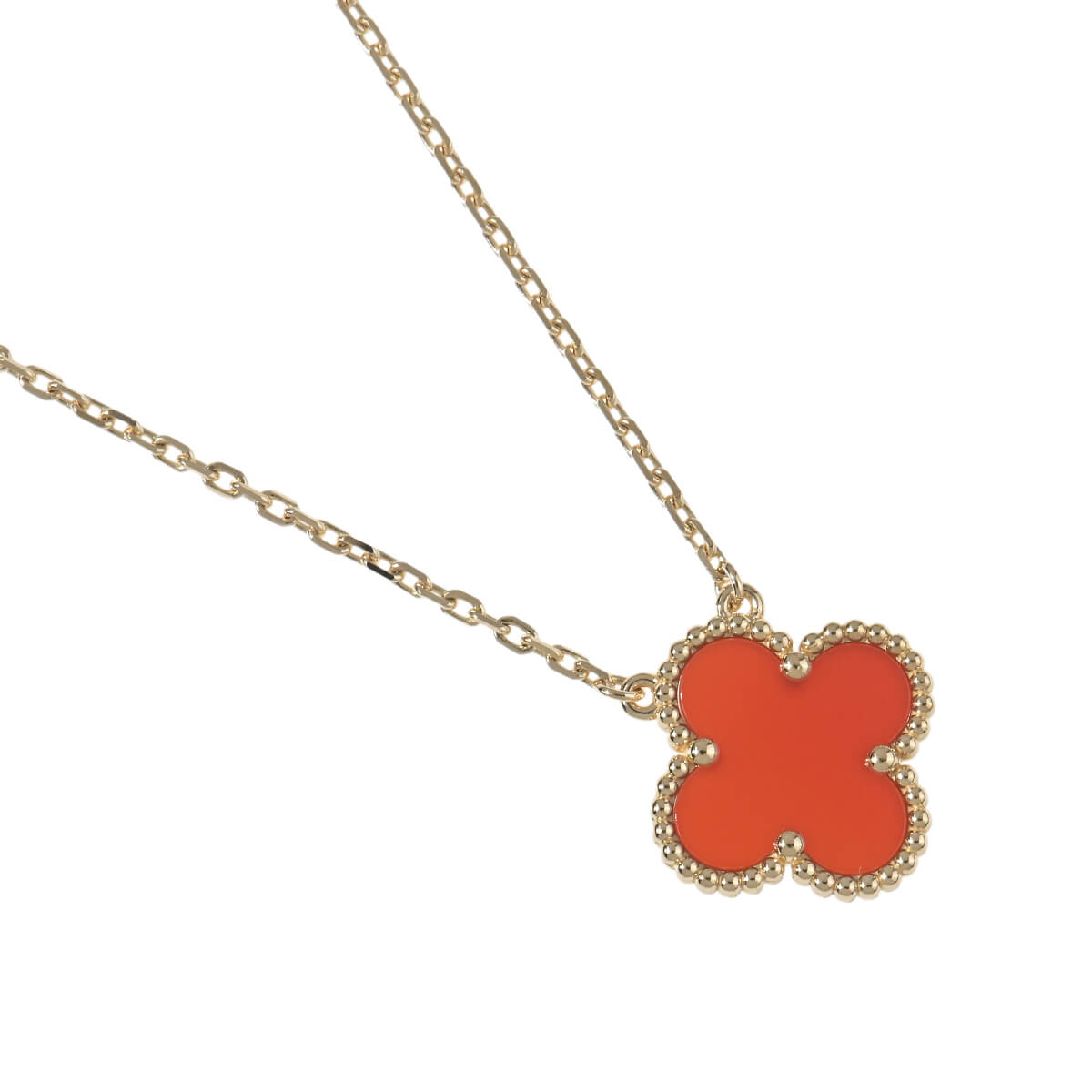 1968年に初めて誕生した幸運のシンボル「アルハンブラ」の特徴を受け継ぎ、『VanCleef&Arpels(ヴァンクリーフ&アーペル)』ならではの独創性と時を超えるエレガンスを湛える「ヴィンテージアルハンブラ」コレクション。世界中の女性たちに愛され続ける魅力的なビーズに縁どられたこのラッキーチャームは、エレガントで清楚、控えめでありながら洗練された、メゾンを代表するアイコンです。ゴールドビーズに縁取られた艶やかな朱赤が美しいカーネリアンのアイコニックなクローバーが、圧倒的な存在感を放つ、イエローゴールド製「ヴィンテージアルハンブラ」ペンダント。たくさんつけてもしつこくなく、むしろ“素敵”にまとまる、不思議な個性をもつアルハンブラはコレクションで揃えていって、バリエーションを魅せるのも。ひとめでそれとわかるラッキーチャームを、どのタイミングで、どのカラーで迎えるかを考えるのも楽しい、エレガントに映えるハッピーな魅力にあふれたコレクションジュエリーです。