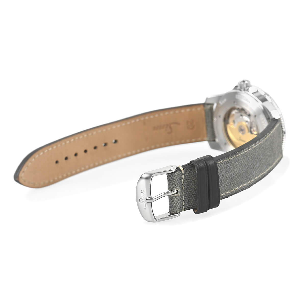60年代から続くジンのパイロットウォッチの基本精神に基づいて製作された「104.ST.SA」。両方向回転式のベゼルは、ジン独自の装着方法で取り付けられているため、外れることがほぼありません。
