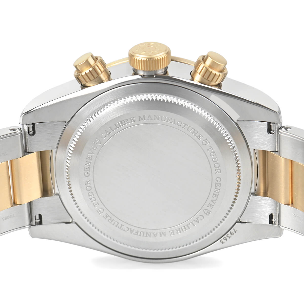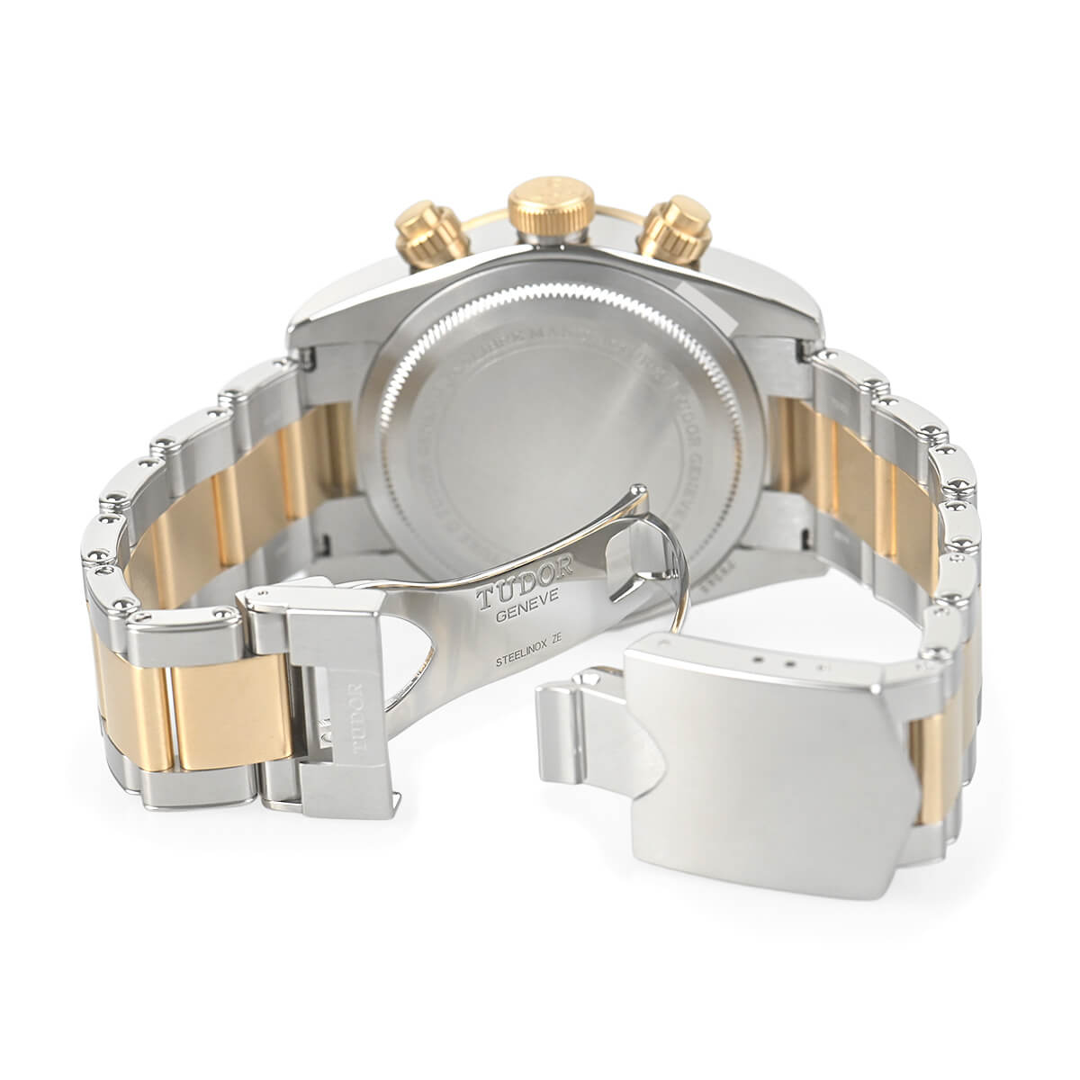 ダイヤルにはチューダーの「盾」マークをプリントしていますが、リューズトップにはヴィンテージ感の漂う「チューダーローズ」が刻印されています。