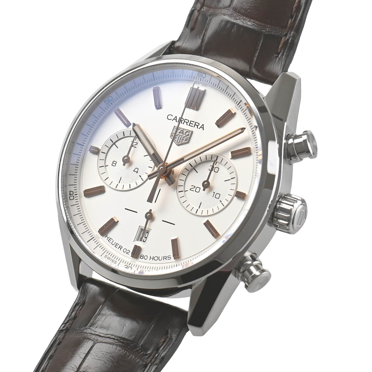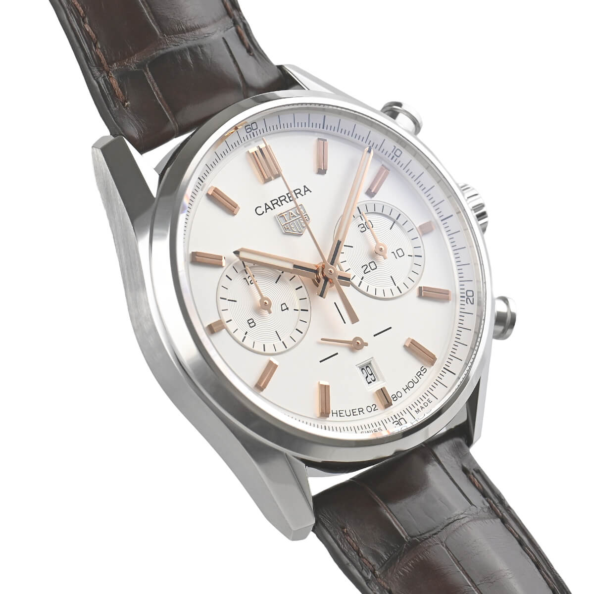 ホイヤー01を搭載したモデルが縦目クロノだったのに対し、ホイヤー02モデルは横目クロノとなっています。
