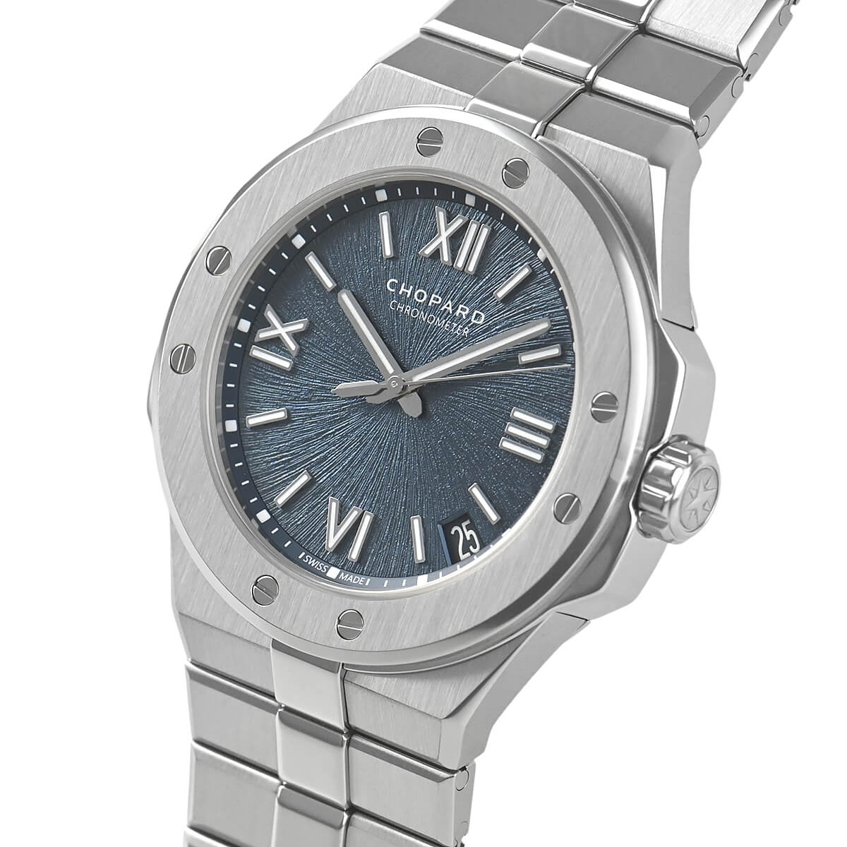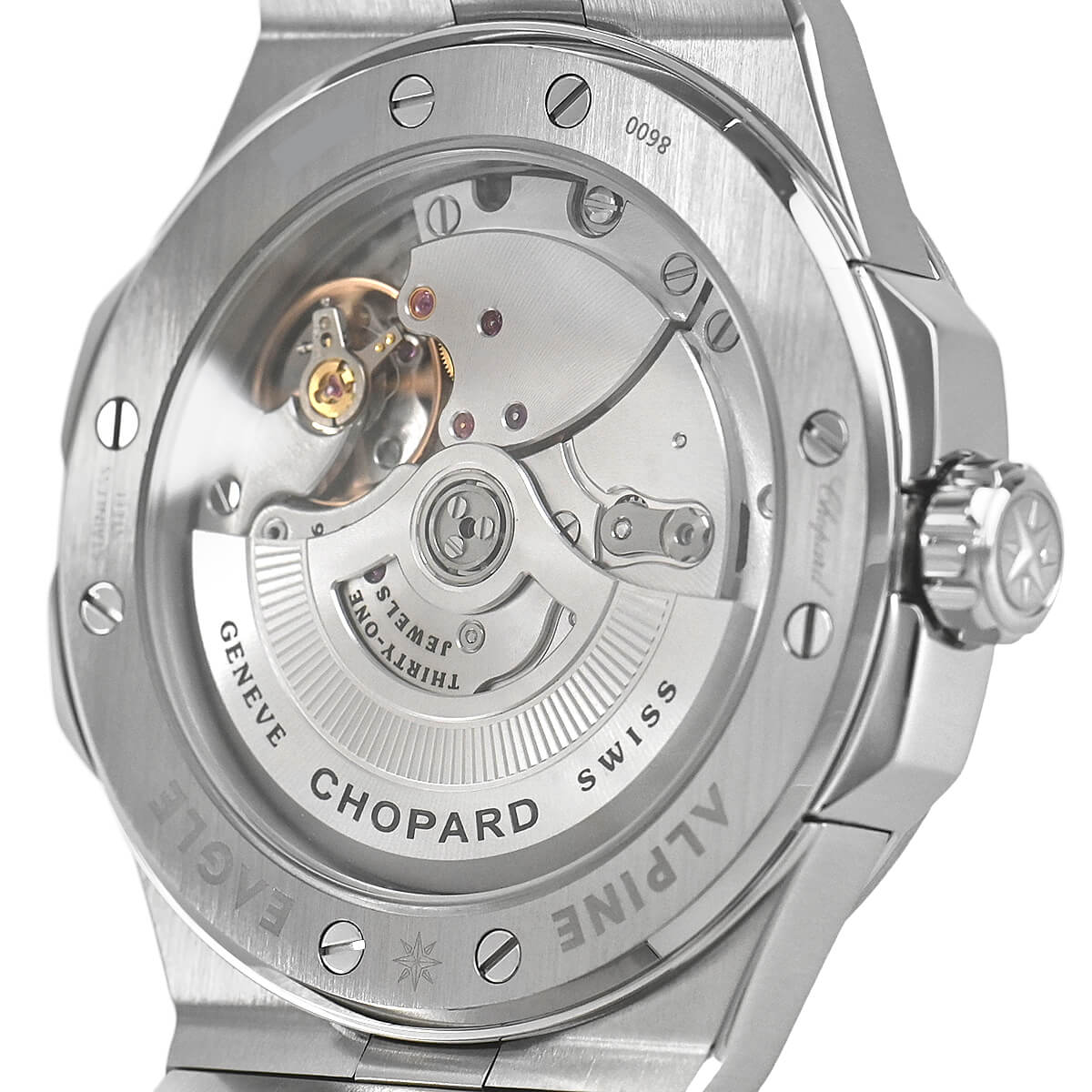 1980年にショパールの共同社長を務めるカール-フリードリッヒ・ショイフレ氏がデザインした「サンモリッツ」にインスピレーションを受けデザインされた「アルパインイーグル」。一体感があるケースとブレスのデザインが特徴です。