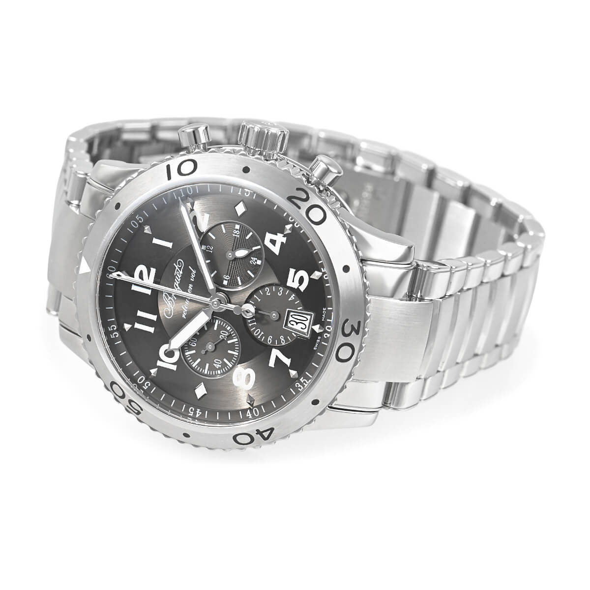 フランス軍の航空部隊用として開発されたタイプXXを元に、現代風なアレンジを加えた「トランスアトランティック」。ミリタリーウォッチならではの操作性・視認性の良さはそのままに、ブレゲ特有のコインエッジなどで高級感も漂います。