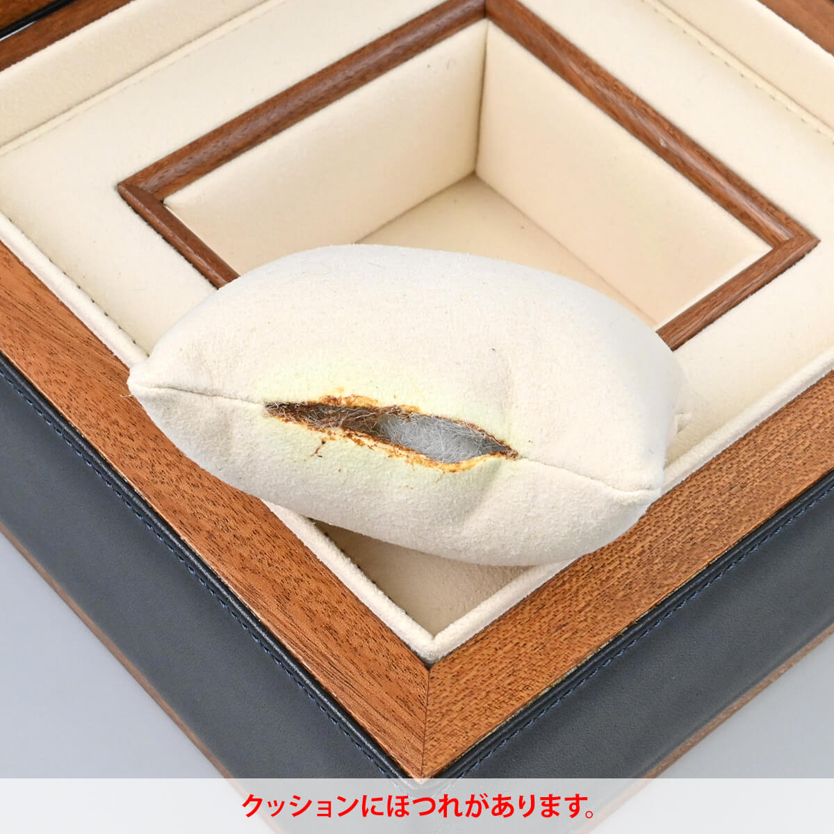ベゼルに傷、内箱内のクッションにほつれがあります。