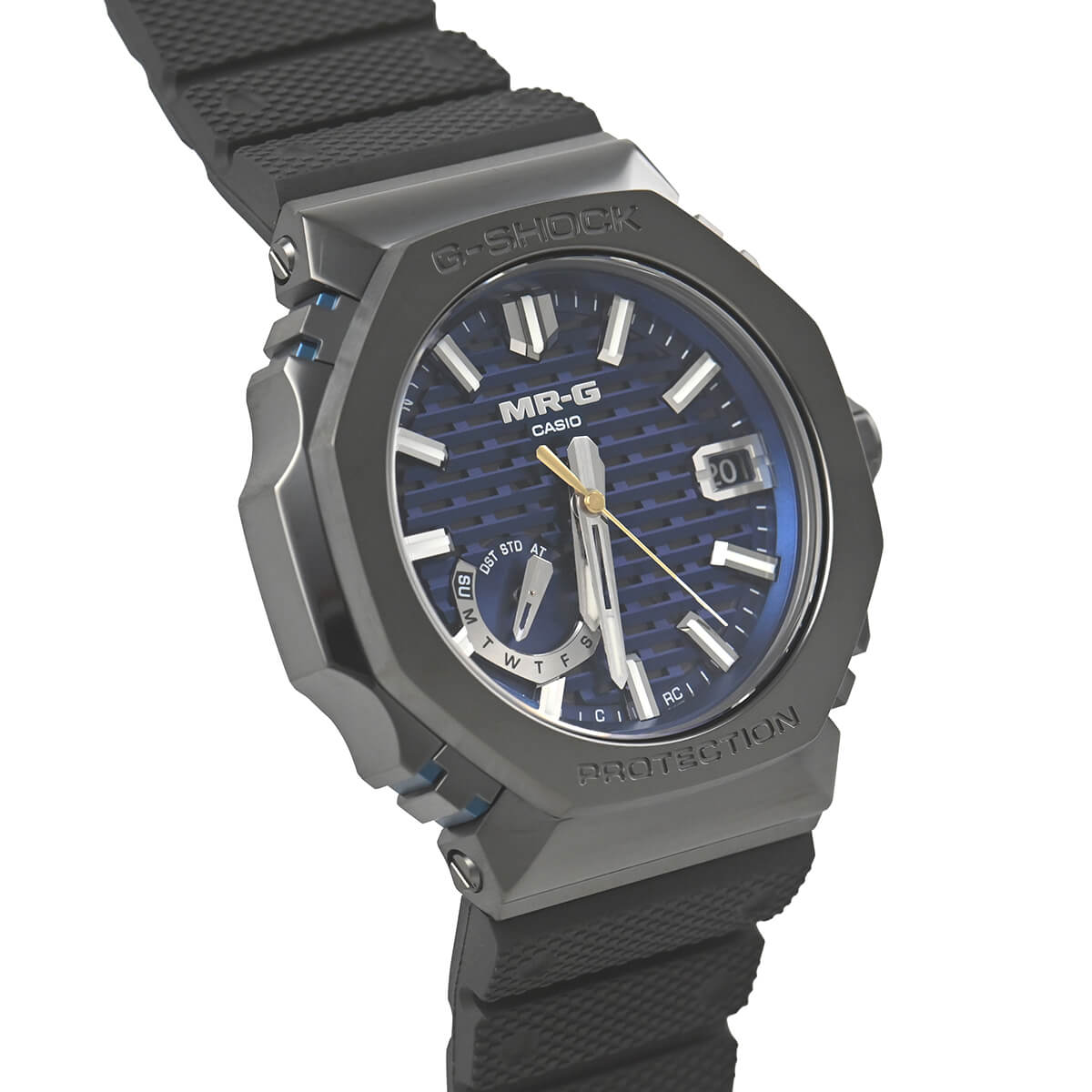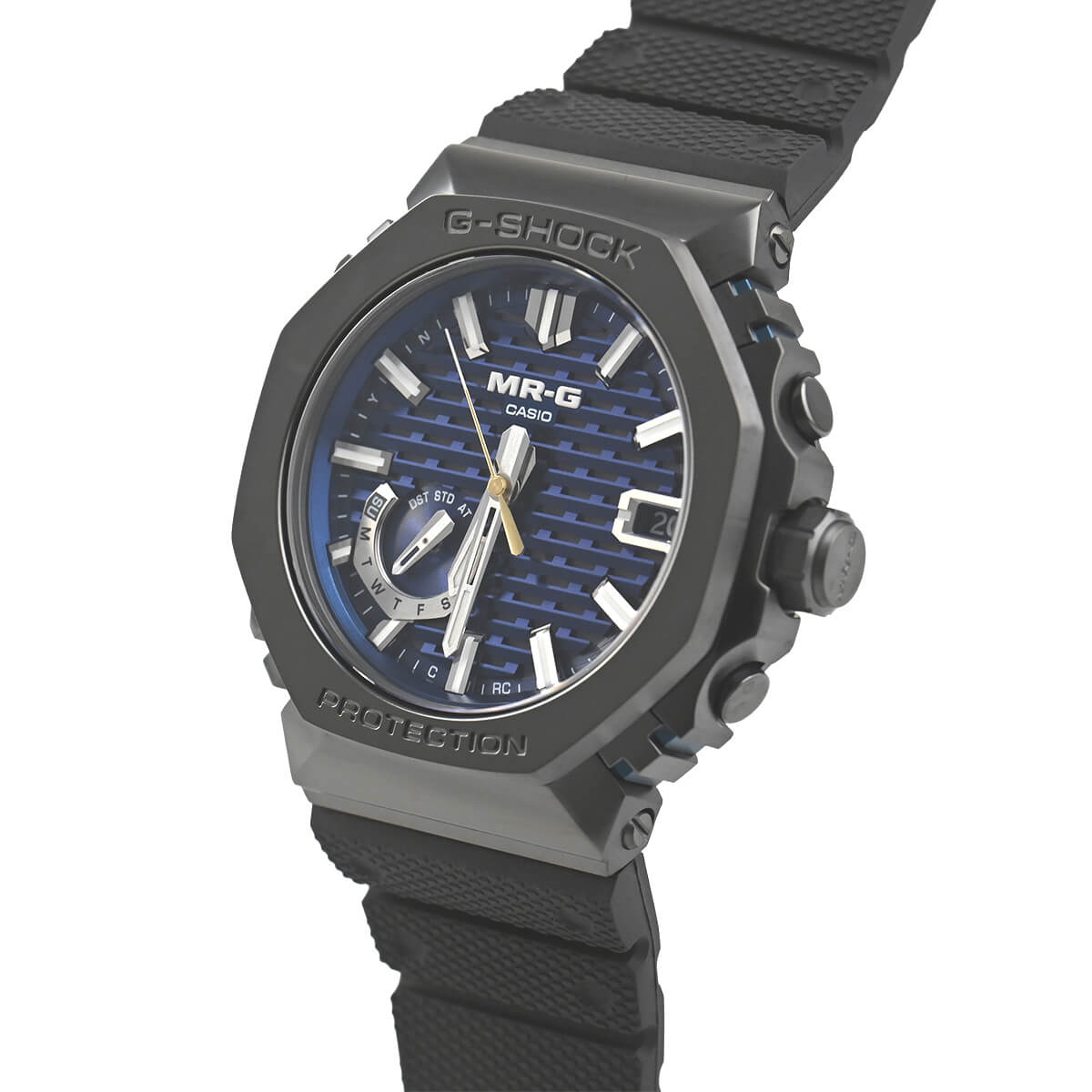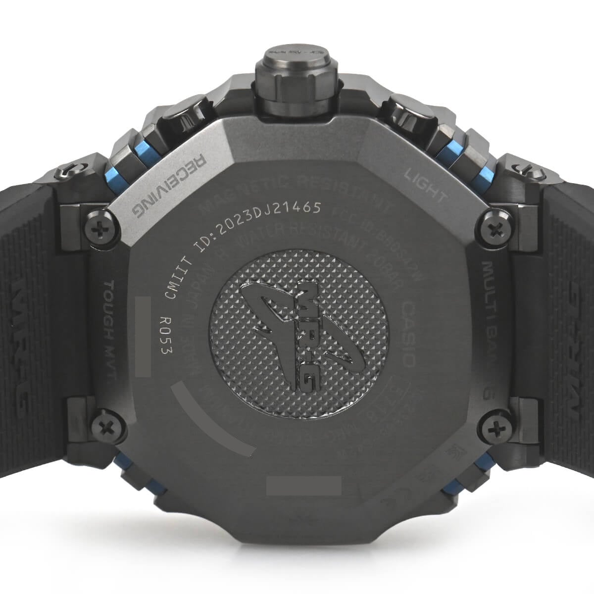 G-SHOCKの最上級ラインである「MR-G」シリーズ。ベゼルトップには純チタンの約4倍の硬度を誇り、プラチナと同等の輝きを持つといわれる「COBARION(コバリオン)」を採用。