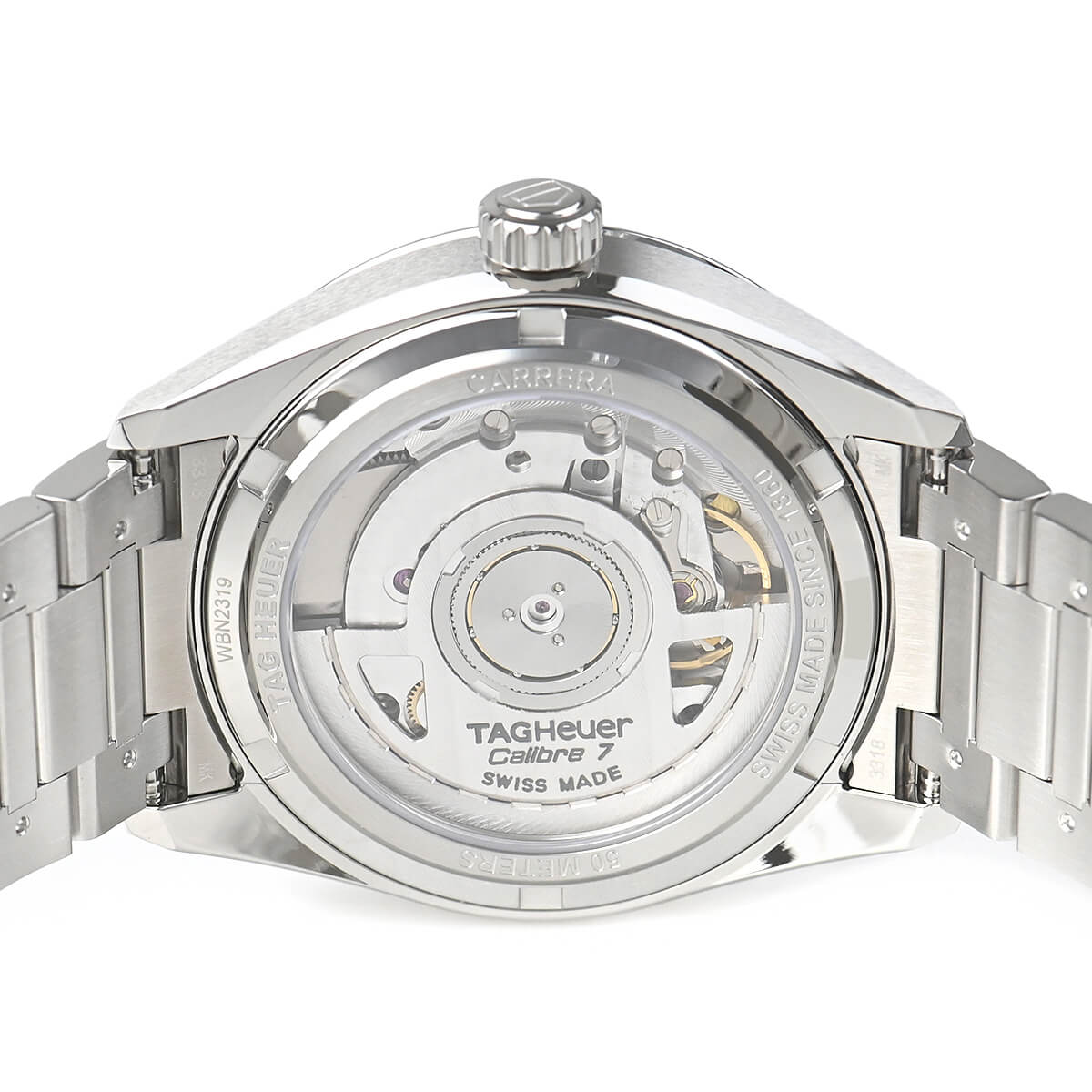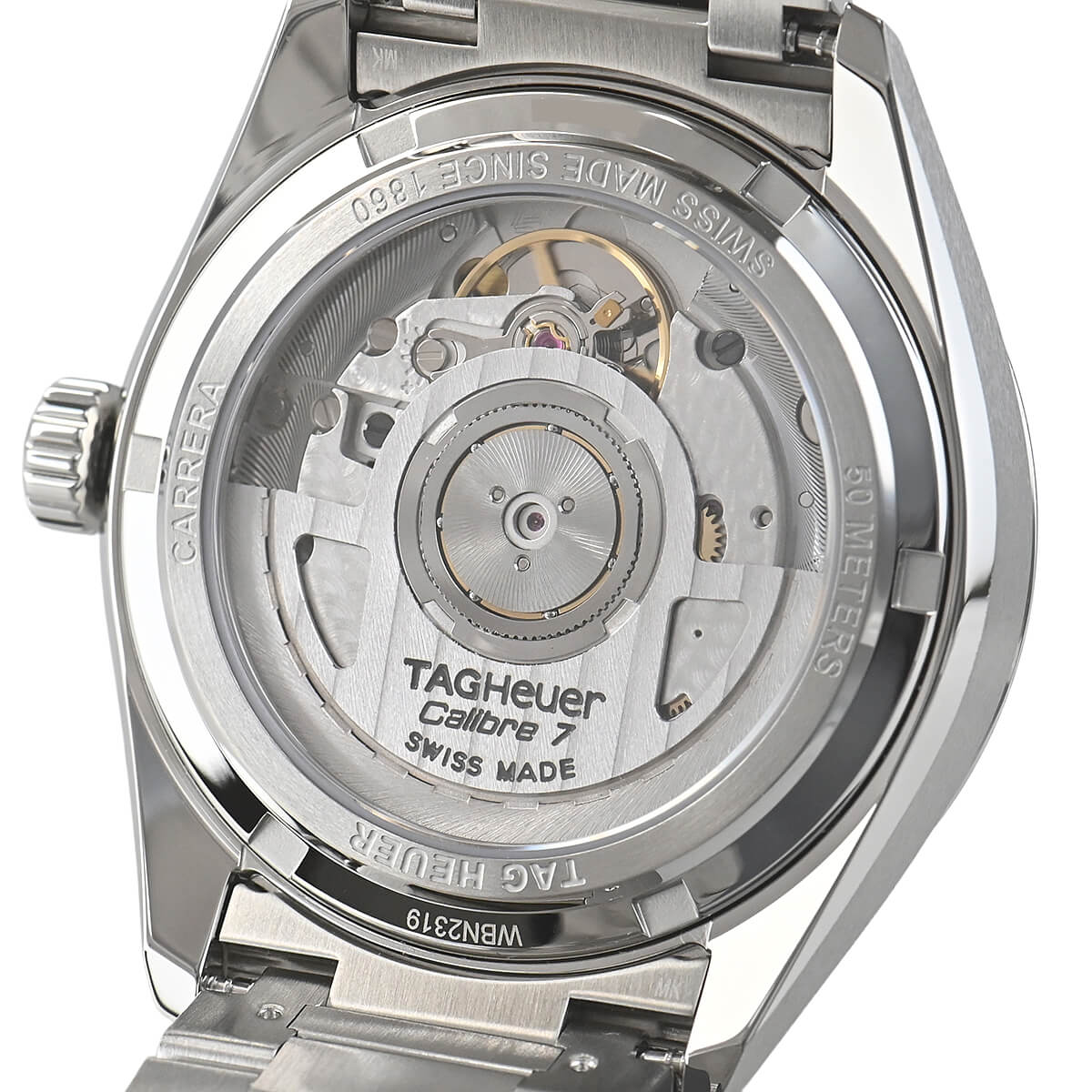 旧型である「カレラ キャリバー5」がアップデートされたモデル「カレラ キャリバー7」。旧型との違いは、名前にも記載されていたCALIBRE5の文字が無くなってautomaticの文字が大文字になり、モデル名の【CARRERA】が大きく協調され、文字盤の色味とインデックスのデザインもデビュー当時の様な形状となっております。