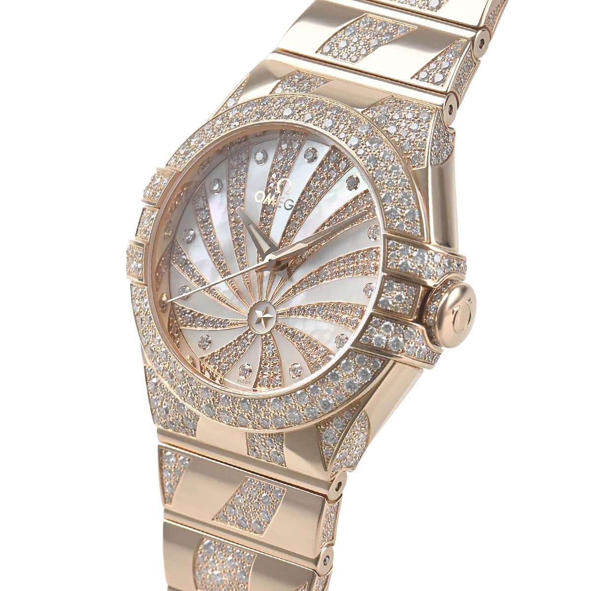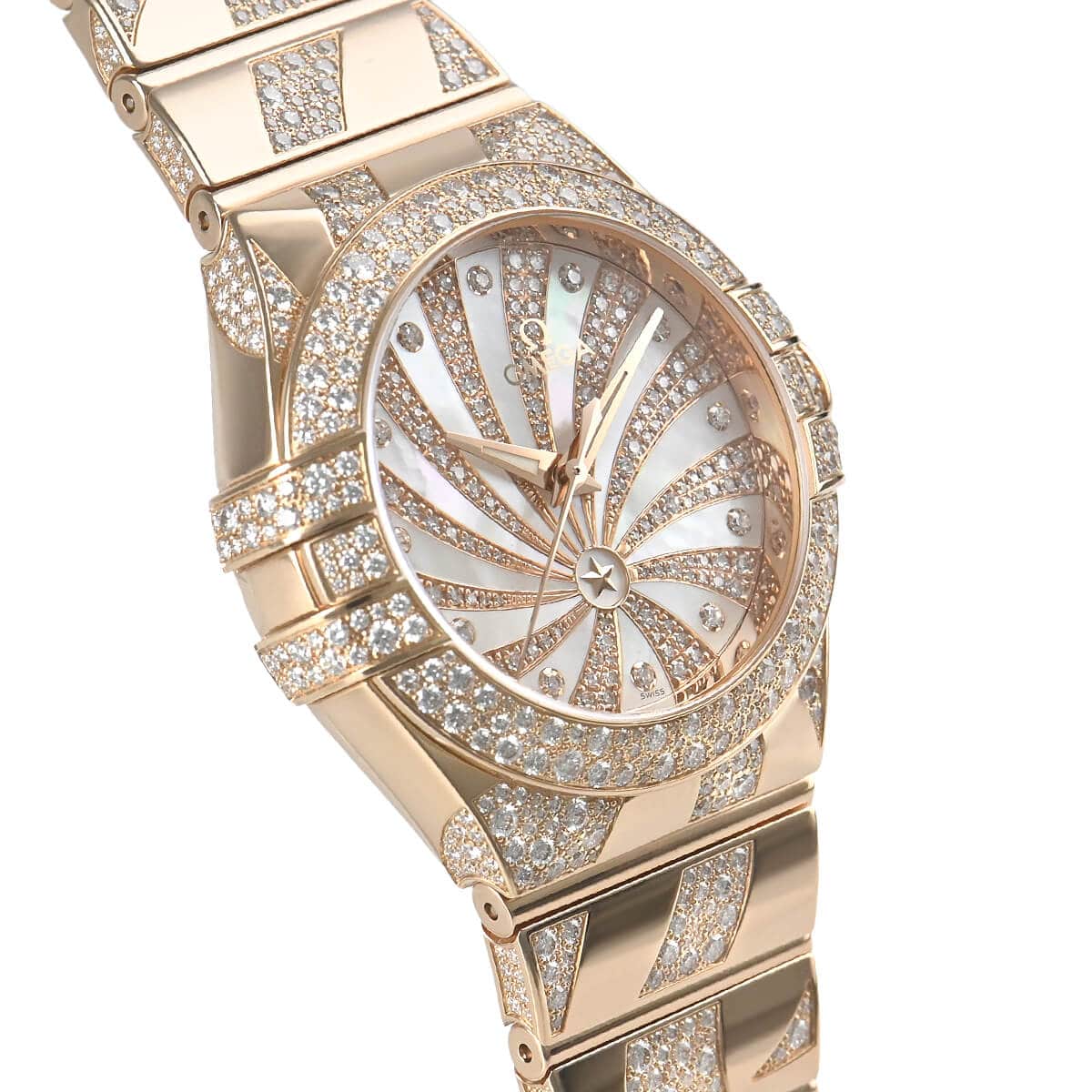 オメガの最高級ライン「コンステレーション」。こちらはケースやブレスレットにダイヤモンドをセッティングした豪華なモデルです。