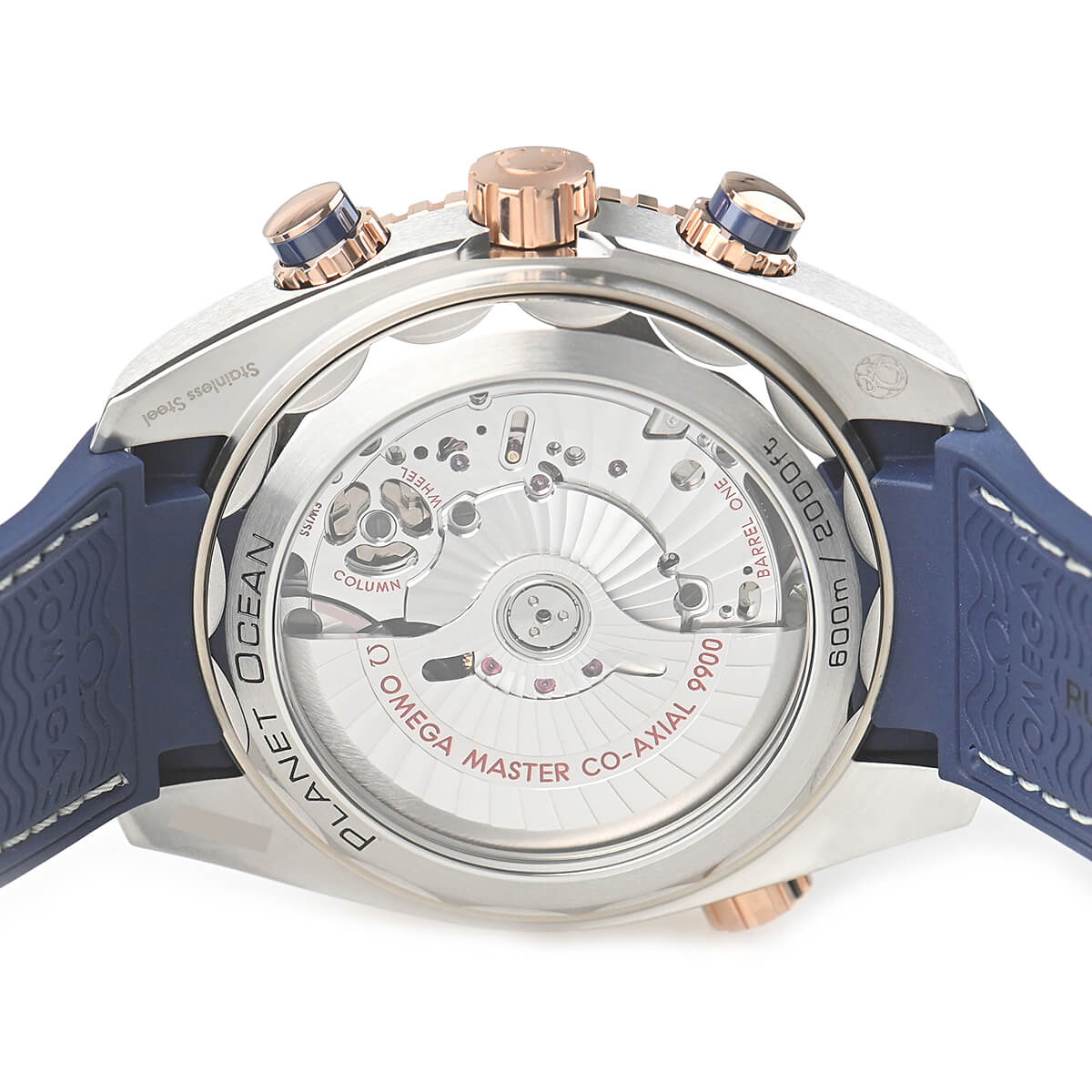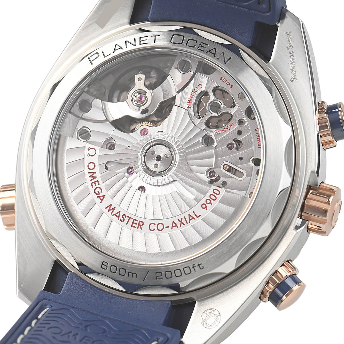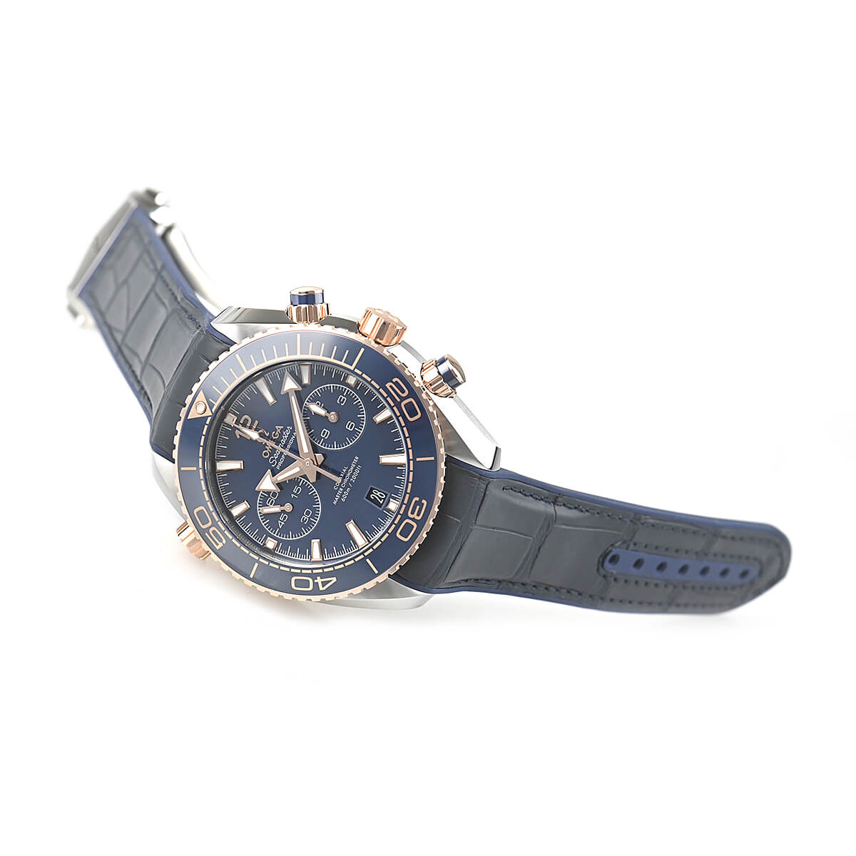 ベゼルには18Kセドナゴールドセラミック製ベゼル・ヘリウムガス放出バルブを備えた600m防水のプロダイバー 【215.23.46.51.03.001】シーマスター プラネットオーシャン 600M。2カウンターとなり、3時位置には同軸のクロノグラフ積算計を設け、12時間までの経過時間を時間を読むように知ることが出来ます。