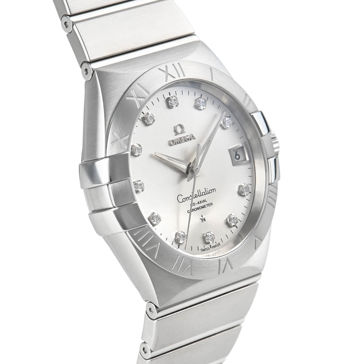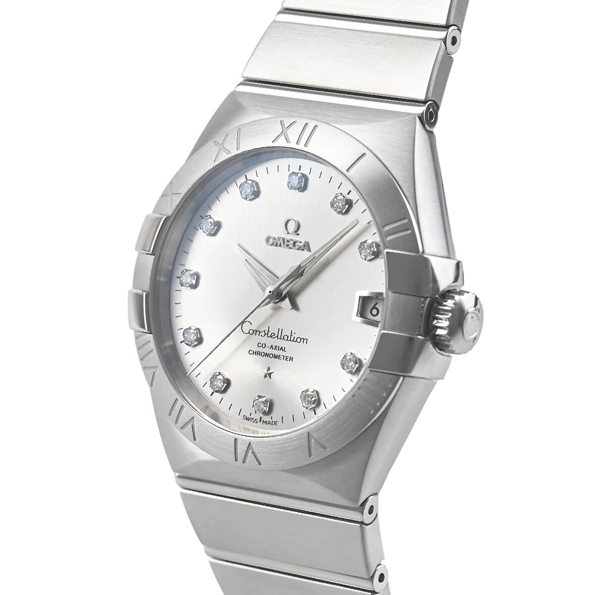 1952年に誕生した「コンステレーション」は、今ではオメガを代表するシリーズに成長しています。こちらはシルバー文字盤に11ポイントのダイヤモンドをセッティングした上品なモデルです。