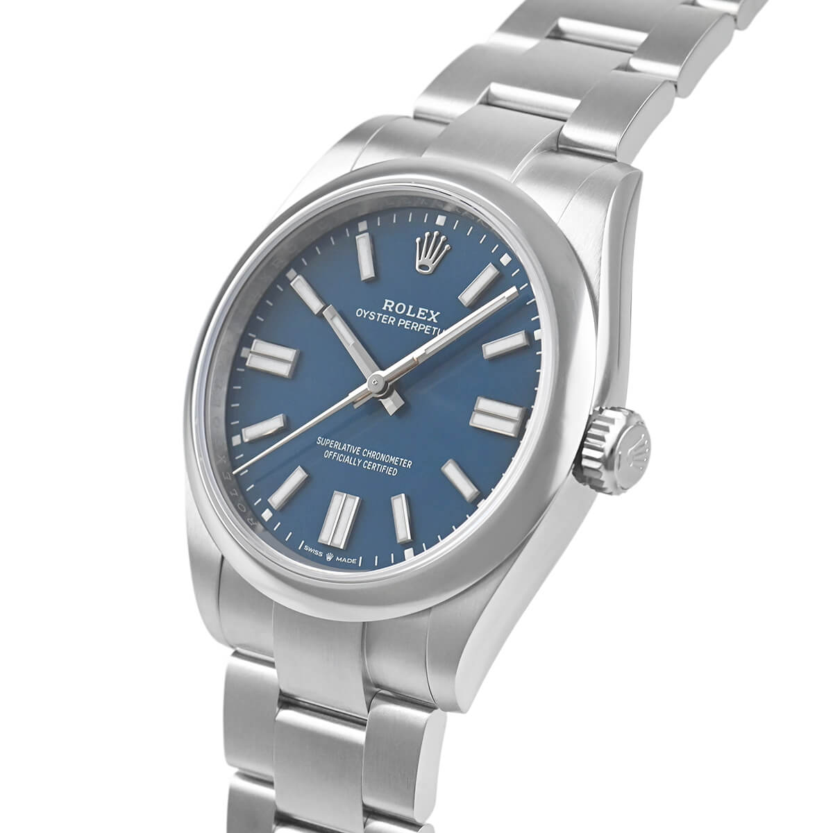 ロレックスのパイオニア精神に則り、普遍的かつ個性的なオイスターケースを採用する【134300 オイスターパーペチュアル41】。こちらはケース径41mmのサイズとなり、文字盤は美しい色合いのメッドブルー/バーインデックスです。