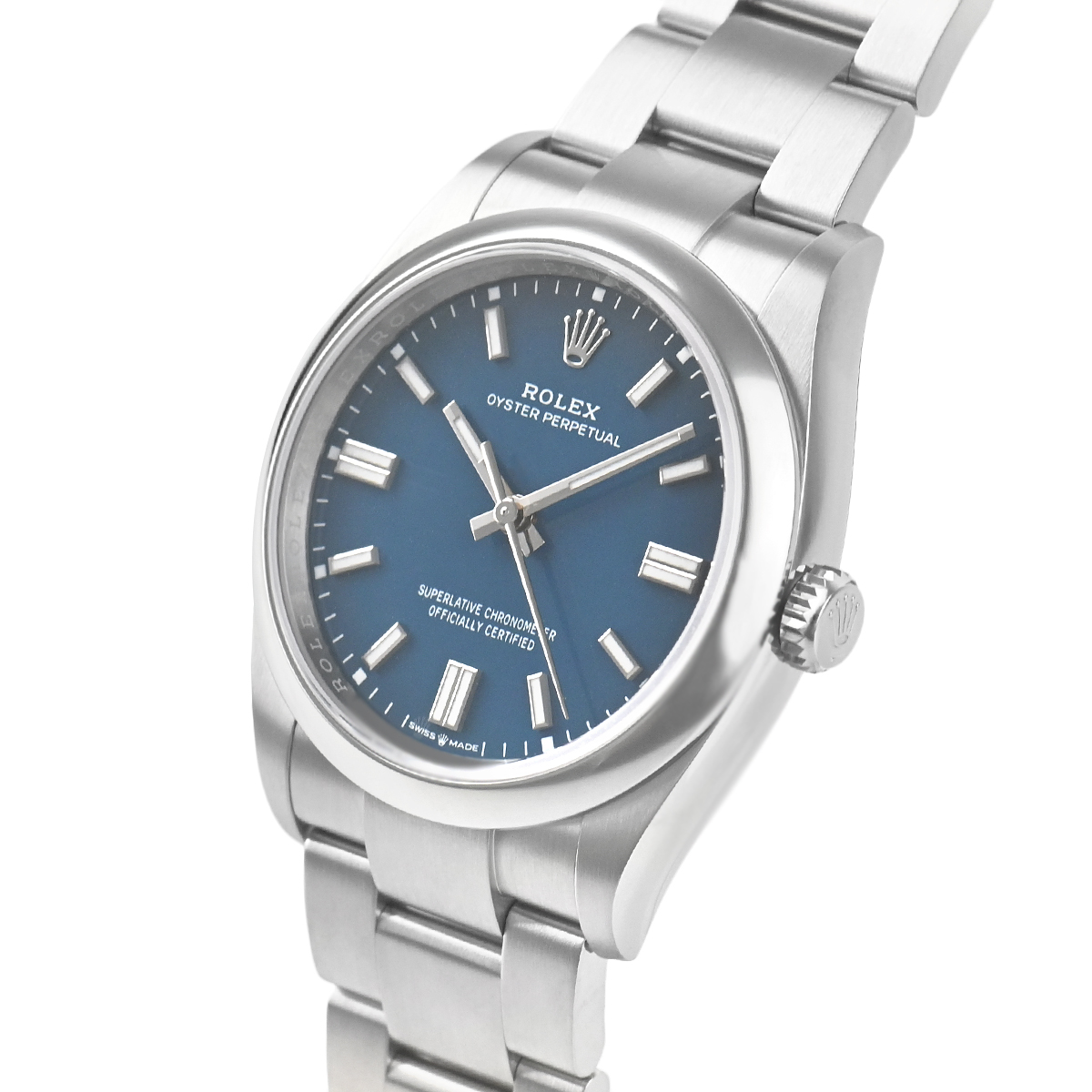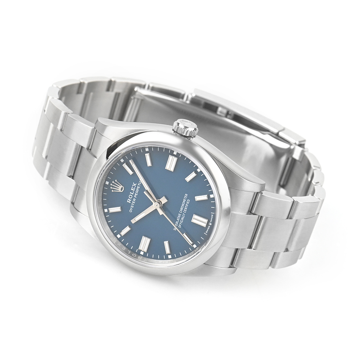 ロレックスのパイオニア精神に則り、普遍的かつ個性的なオイスターケースを採用する【126000 オイスターパーペチュアル36】。こちらはケース径36mmのメンズサイズとなり、文字盤はメッドブルー/バーインデックスです。